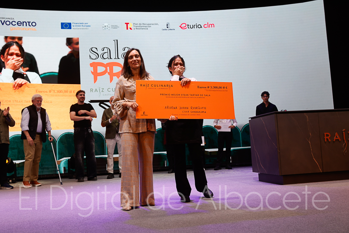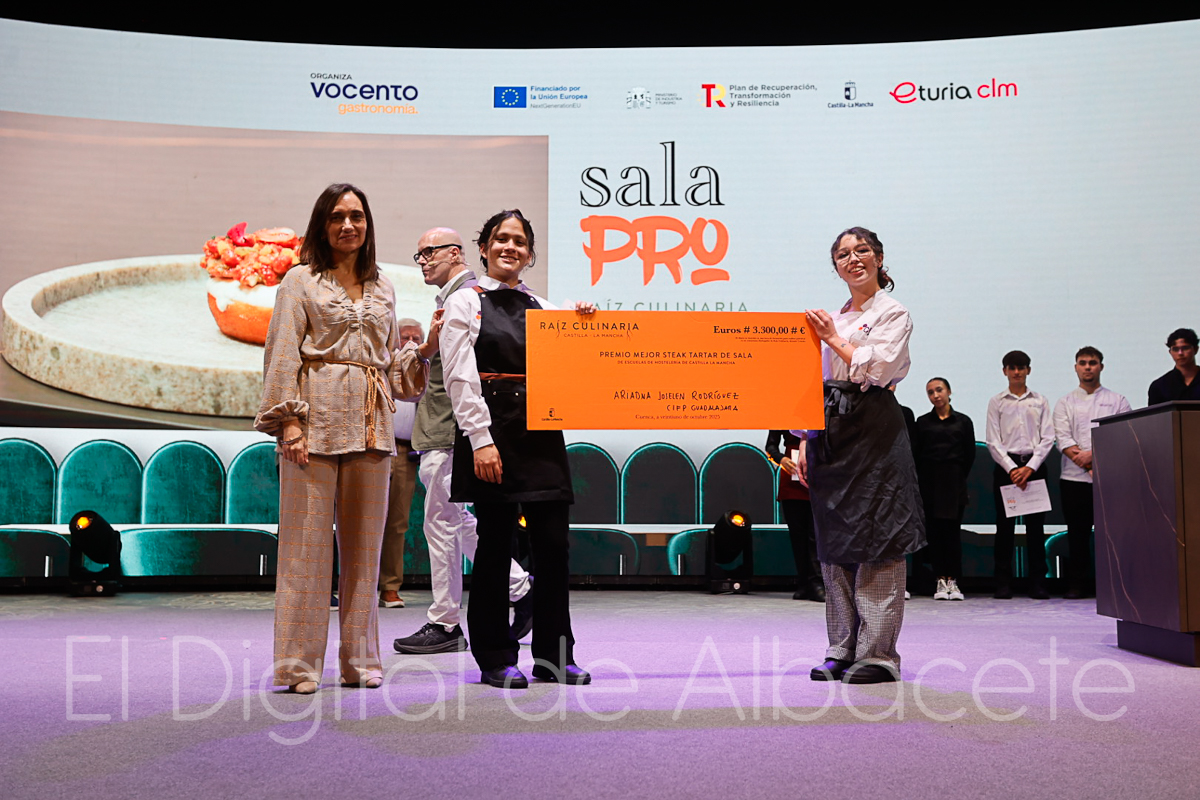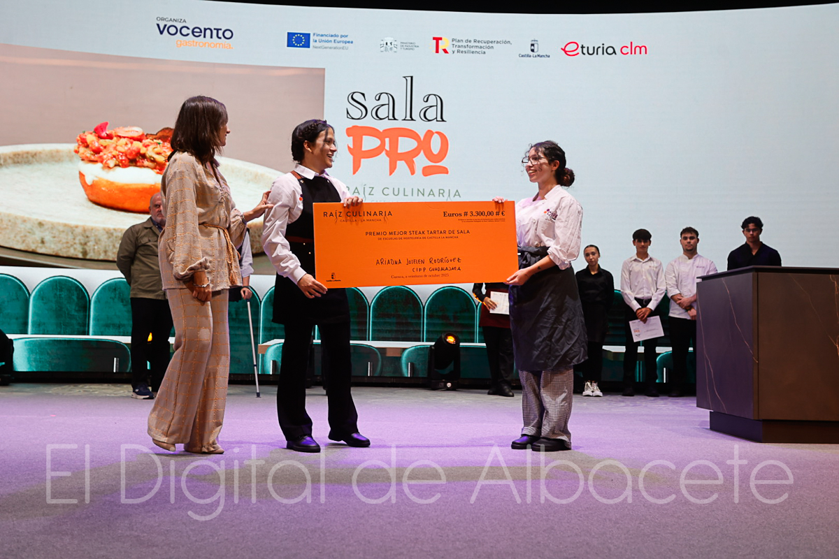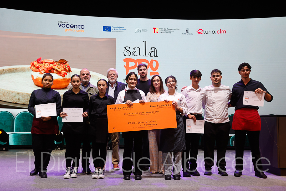 La jornada finalizó con un emocionante concurso gastronómico, en concreto la segunda edición de Steak Tartar, que reunió a cinco participantes: Sofía Pacheco, del IES Alondo de Orozco (Oropesa, Toledo); María Isabel Muñoz, del IES Fray Luis de León (Las Pedroñeras, Cuenca); Mateo Zarco de la Escuela de Hostelería de Castilla-La Mancha (Tembleque, Toledo), Ariadna Rodríguez del CIFP Guadalajara de Guadalajara y Alejendro García del IES Alonso de Orozco (Oropesa, Toledo).