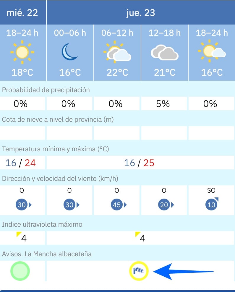 La previsión de la AEMET para este jueves en Albacete y su provincia es la siguiente:
