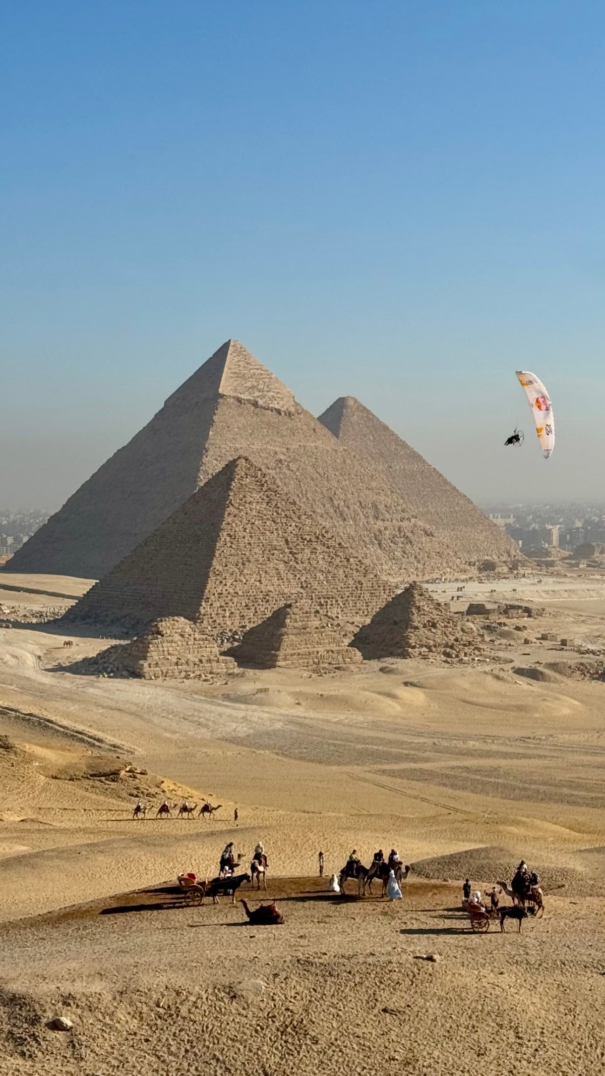 Durante esos días, Horacio logró capturar imágenes inéditas y de una belleza sobrecogedora, que compartimos adjuntas al final de este artículo informativo. Algunas de ellas lo muestran realizando maniobras acrobáticas sobre la Gran Pirámide de Keops, e incluso volando de noche entre las tres pirámides principales de Giza, en una de las producciones más ambiciosas de su carrera.
