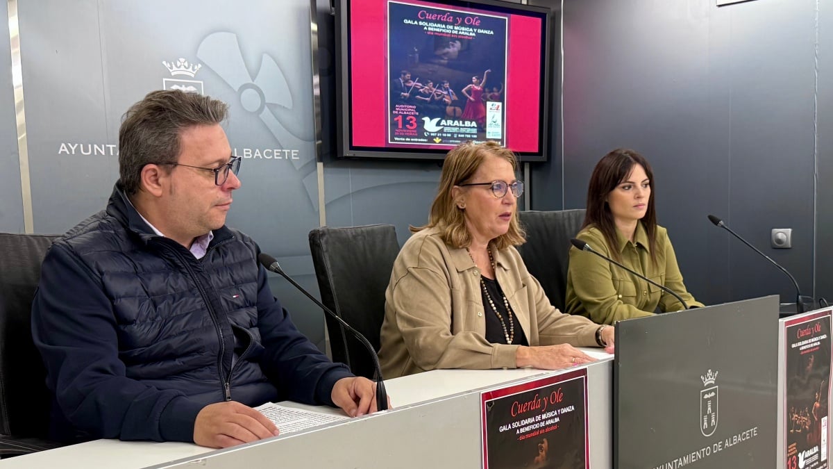 La concejala de Asuntos Sociales, Llanos Navarro, ha presentado en rueda de prensa la gala de música y danza solidaria a beneficio de la Asociación Aralba de Alcohólicos Rehabilitados, otras sustancias y sus familiares. La edil estaba acompañada del presidente y la psicóloga de la asociación, Pedro Munera y Laura Amores.