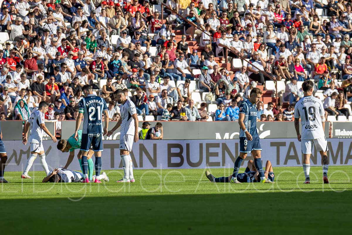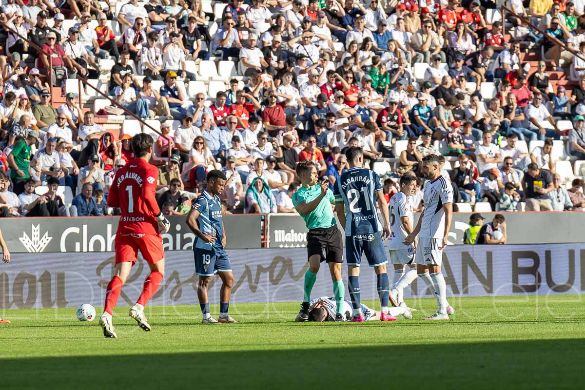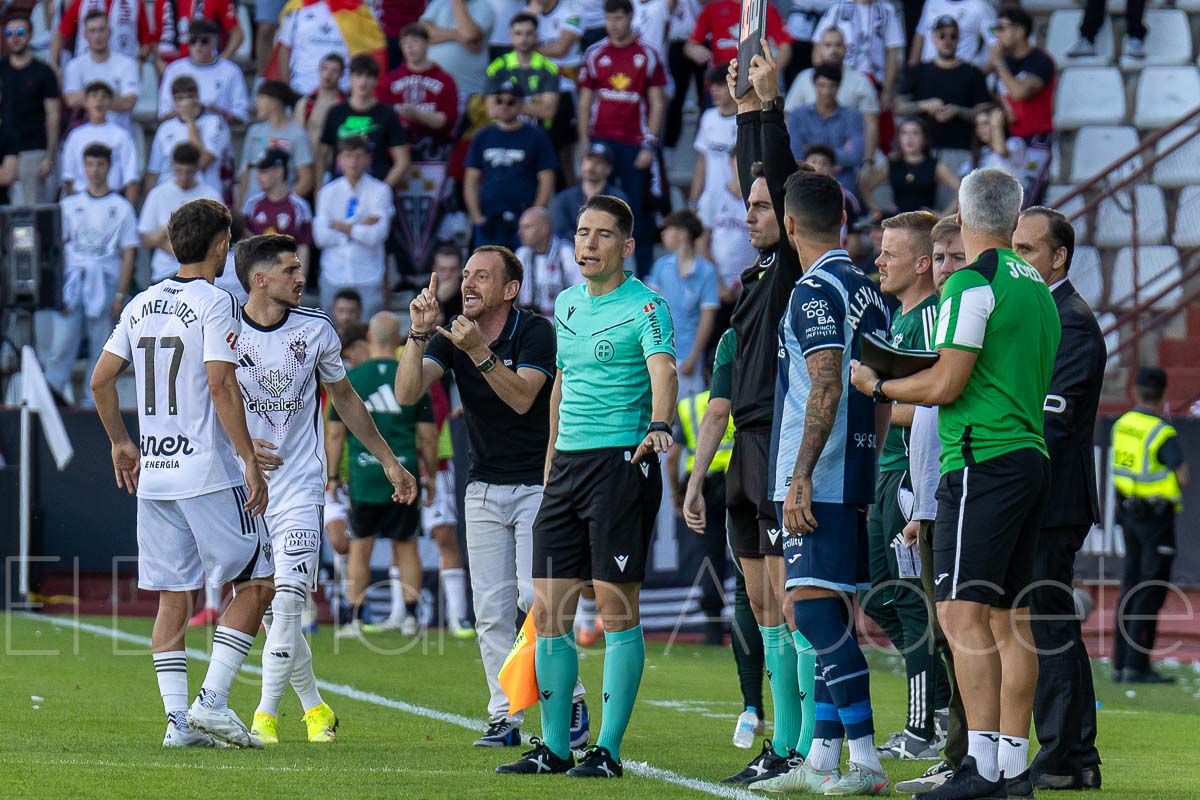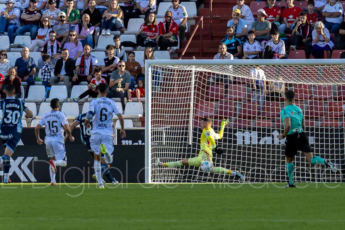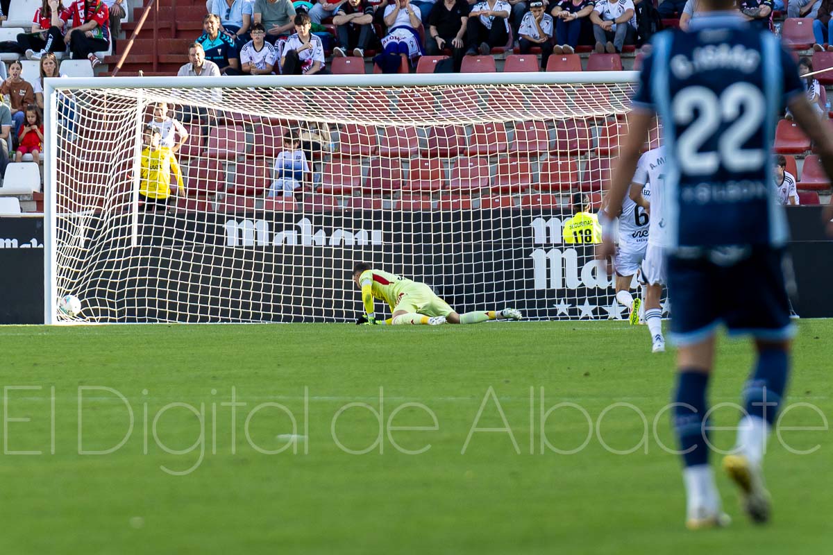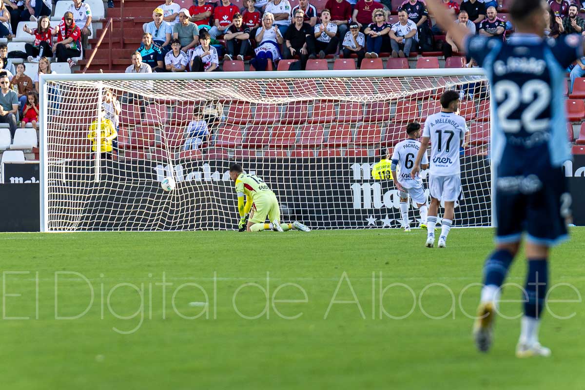 Puntual a las 16.15 horas Muñiz Muñoz hizo sonar su silbato y el balón echó a rodar en el Carlos Belmonte, reclamando el Albacete Balompié y su afición penalti cuando el crono indicaba el minuto 2 de juego, pues Agus Medina cayó dentro del área derribado por Iker Álvarez y se pidió pena máxima porque contacto hubo, pero el VAR, con la nueva normativa de esta temporada, no entro a valorar la acción y dejó primar la decisión del árbitro principal en vivo y en directo. La jugada, viendo lo que pasó después, perjudicó al Albacete y no porque no se señalara la pena máxima, sino porque sacó del partido a los blancos y en la jugada siguiente encajaron el 0-1.