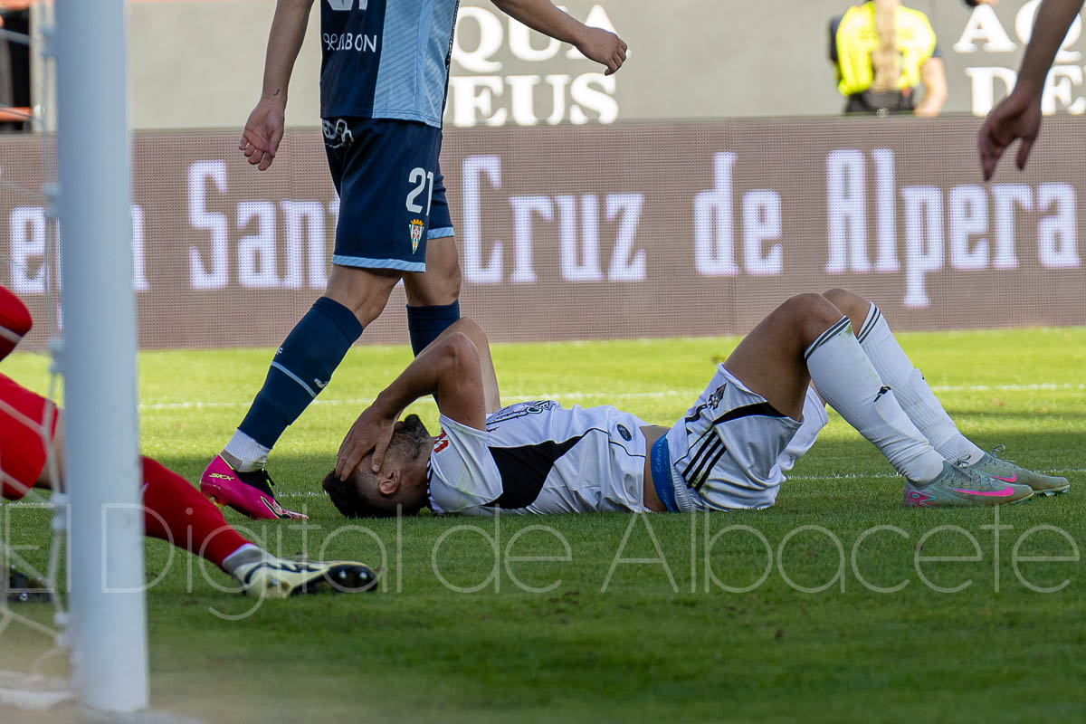 Si el mazazo del 0-1 fue tremendo, el del 0-2 lo fue todavía mayor y el Albacete desapareció por completo del partido, convirtiéndose en un juguete roto en las manos de un Córdoba que no buscó hacer más sangre y que se dedicó a hacer que nada ocurriera sobre el terreno de juego y que lo único que pasara fuera el tiempo. El Albacete, por su parte, timorato, opaco, desnortado y nulo de ideas, era incapaz de hacer algo positivo en ataque y que pusiera en serias complicaciones a Iker Álvarez, el portero del Córdoba, que vivía la mar de tranquilo ante la inoperancia e ineficiencia albacetista. Tras 4 minutos de alargue, la primera parte llegó a su fin y los jugadores encararon el túnel de vestuarios. Antes, al filo del descanso y para poner la guinda de la vergüenza, Lizoain y Jon García volvieron a cometer sendos errores encadenados que no supusieron el 0-3 de milagro, pues Carracedo erró más que ellos y aún no se entiende como falló lo que falló. El Carlos Belmonte despidió a los suyos con pitos, ya que no se merecían que las 10.995 almas que se congregaron en el coliseo albacetista este sábado lo hicieran de otra manera.