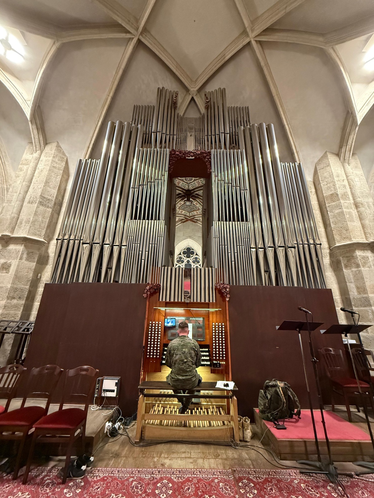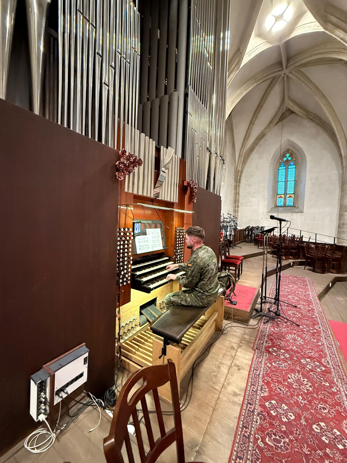 Eso sí, no todo el mundo tiene la oportunidad de poder fundirse con un instrumento como el que atesora la Catedral de San Martín de Bratislava. Así, el soldado Piñero, además de su labor en el Ejército también es músico. Una pasión que le viene desde muy niño de experiencias que guarda como cariño como “tocar en la Semana Santa de Albacete” donde “despertó mi pasión por la música”.