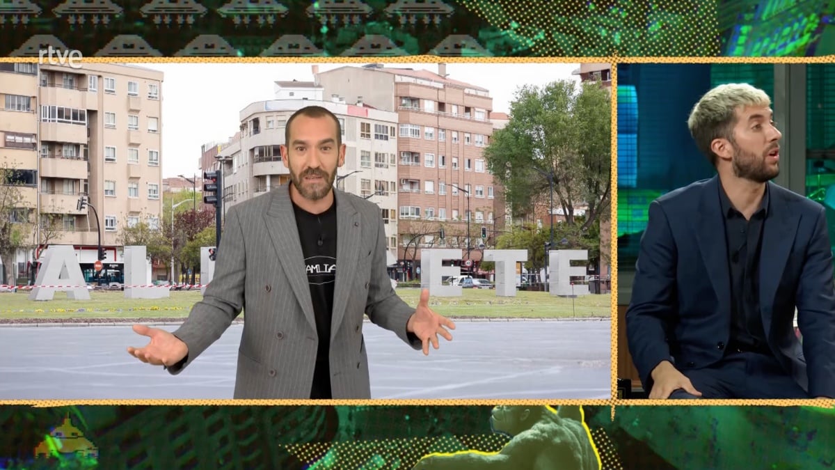 «Yo estoy aquí, pero en un momento estoy en Albacete», bromeó Ponce mientras, en la pantalla del plató, aparecía la imagen de la emblemática rotonda de la Tamos, donde desde 2023 se alzan las grandes letras que dan la bienvenida a quienes llegan desde la carretera de Madrid.