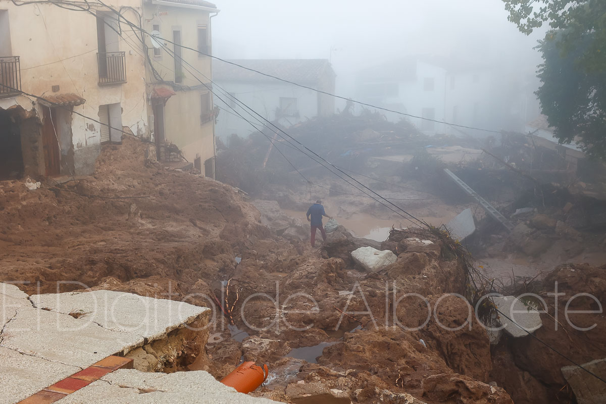 A la mañana siguiente amanecía en Letur entre la niebla y el barro, pudiendo ver a plena luz del día la inmensa cicatriz que había dejado el agua en esta bella localidad de la provincia de Albacete. Agua que también anegaba los ojos de los vecinos del pueblo, quienes se echaban las manos al rostro incrédulos de la desoladora estampa que veían.