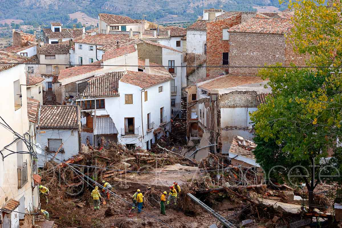 En cuestión de minutos el caudal de la rambla de Letur se multiplicaba, buscando una salida el agua que llegaba con una descomunal fuerza hasta el corazón de este pueblo de la provincia de Albacete. A su paso arrastraba árboles, vehículos y provocaba el derrumbe total o parcial de diversas viviendas. Aún si reponerse de esta primera riada, cuando caía la noche, el agua volvía a hacer acto de presencia en Letur, ahondando en la herida ya causada por el agua y provocando daños y pérdidas irreparables.