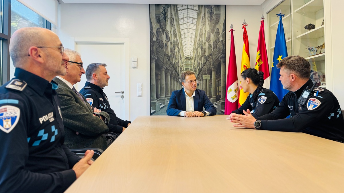 El alcalde Manuel Serrano y el concejal de Seguridad Alberto Reina han recibido a la agente de la Policía Local Gema García Cano, que acaba de obtener dos medallas de oro en los juegos Eurogames 112.