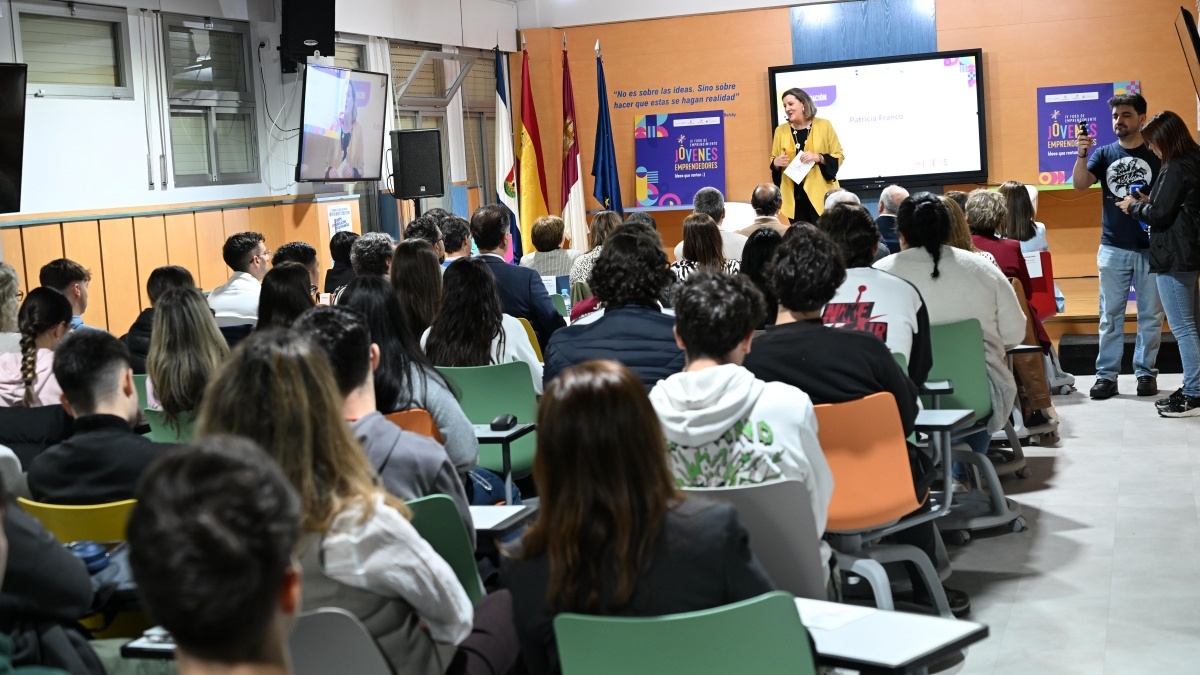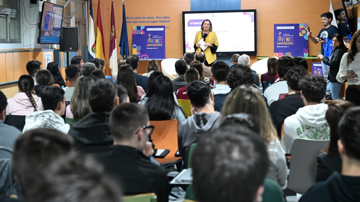 La consejera ha inaugurado hoy el IV Foro de Emprendimiento de Castilla-La Mancha, que se ha celebrado en el día de hoy en el IES ‘Ribera del Tajo’ de Talavera de la Reina, y que tras las ediciones anteriores, que fueron dirigidas a la Red Acompaña, al emprendimiento femenino y al emprendimiento innovador, ha puesto su mirada en el emprendimiento juvenil, con la asistencia de decenas de alumnos y alumnas de algunos de los ciclos de Formación Profesional de un centro educativo de Excelencia Nacional en Inteligencia Artificial y Big Data. Durante la jornada, antiguos alumnos del centro han contado su experiencia emprendedora y han llevado a cabo dinámicas de grupo con las que han amenizado sus coloquios; además de contar con especialistas en orientación laboral y de las Oficinas Emplea para tratar de resolver las dudas más recurrentes en materia de emprendimiento.