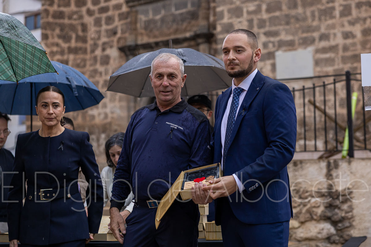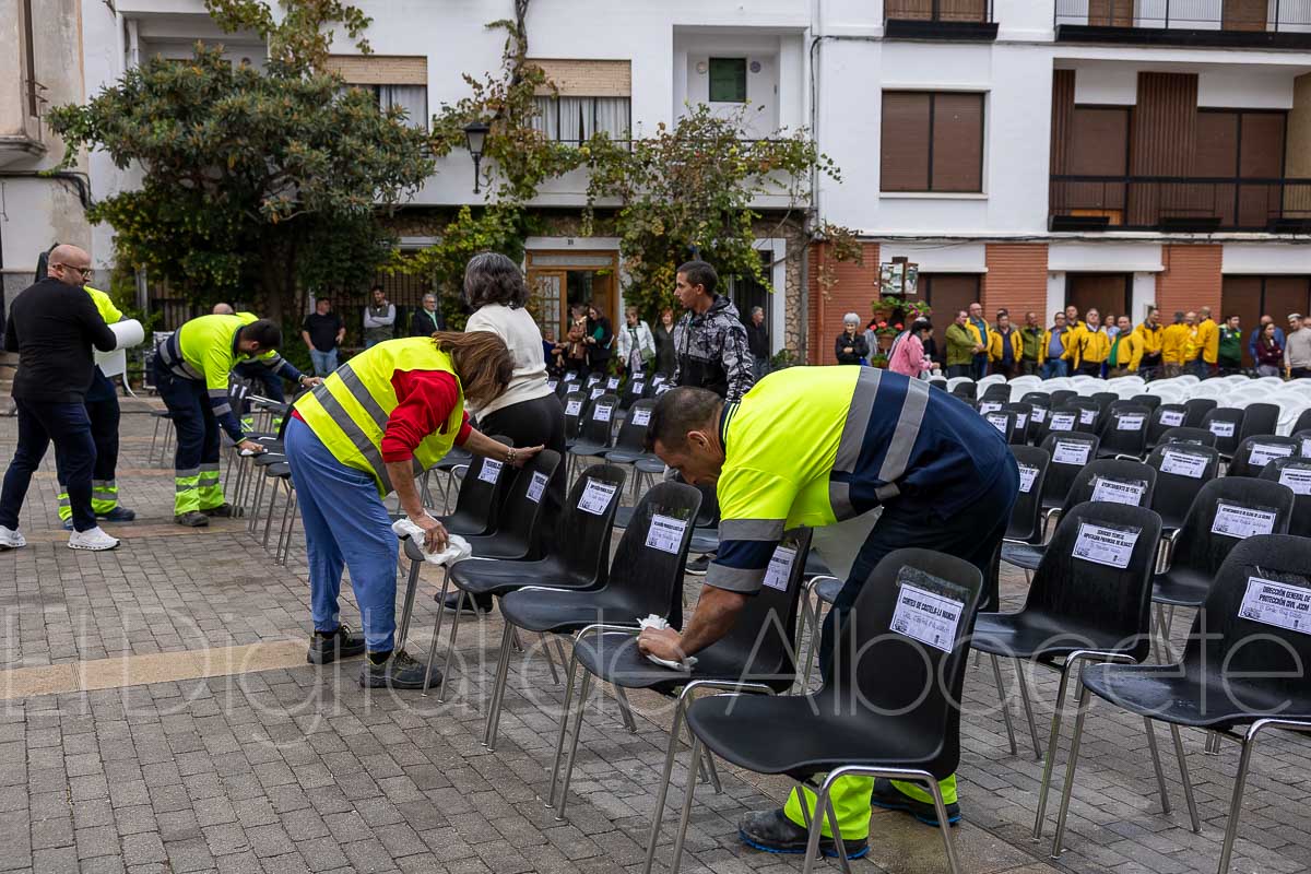 Bajo la lluvia que caía incesante en Letur, subrayaba su alcalde que “la ausencia de nuestros vecinos nos duele profundamente”. Así se dirigía Marín a los familiares de quienes perdieron la vida a causa de la riada para trasladarles en nombre de todo el pueblo “nuestro abrazo sincero y nuestro cariño”.