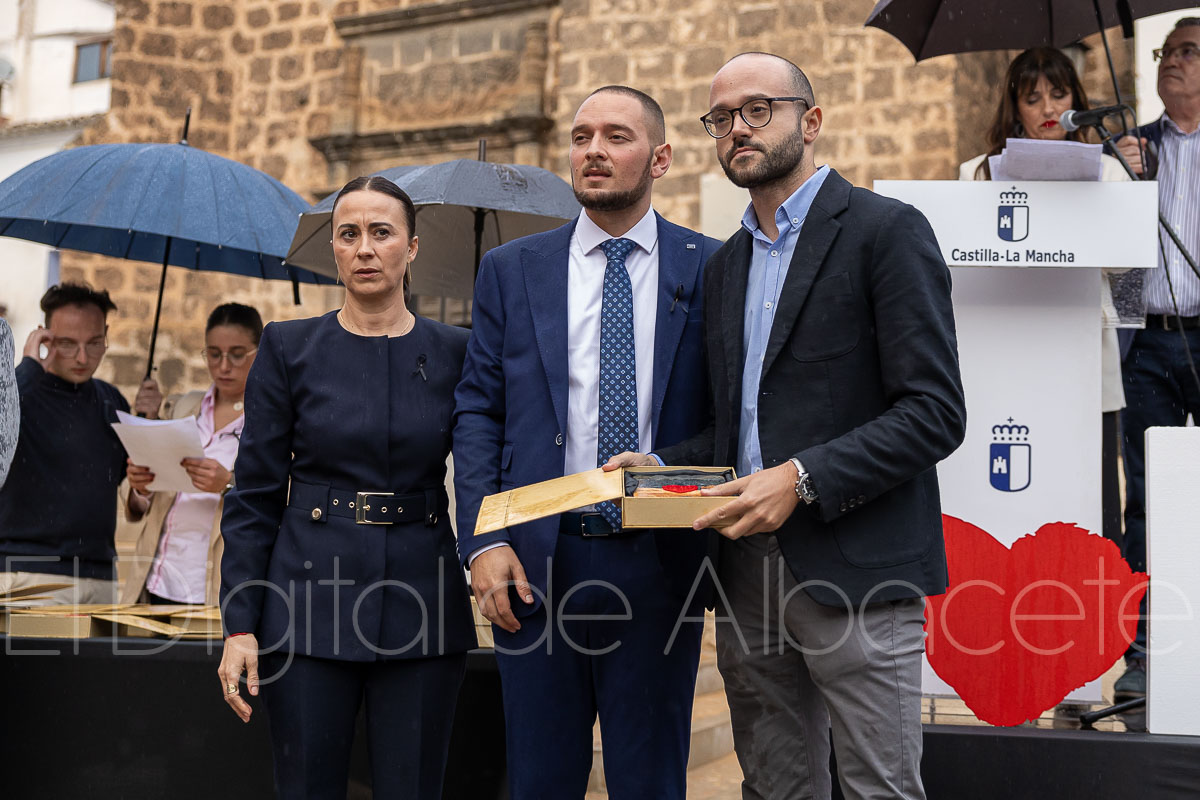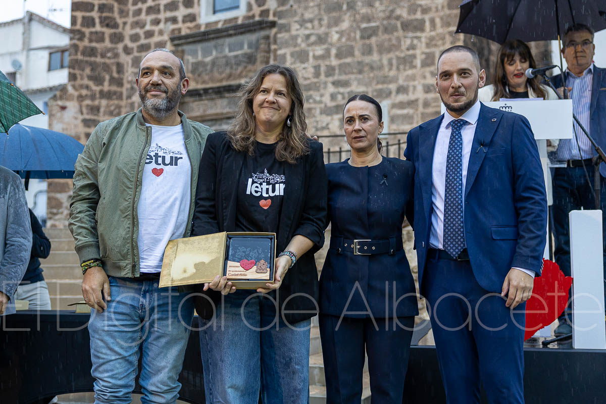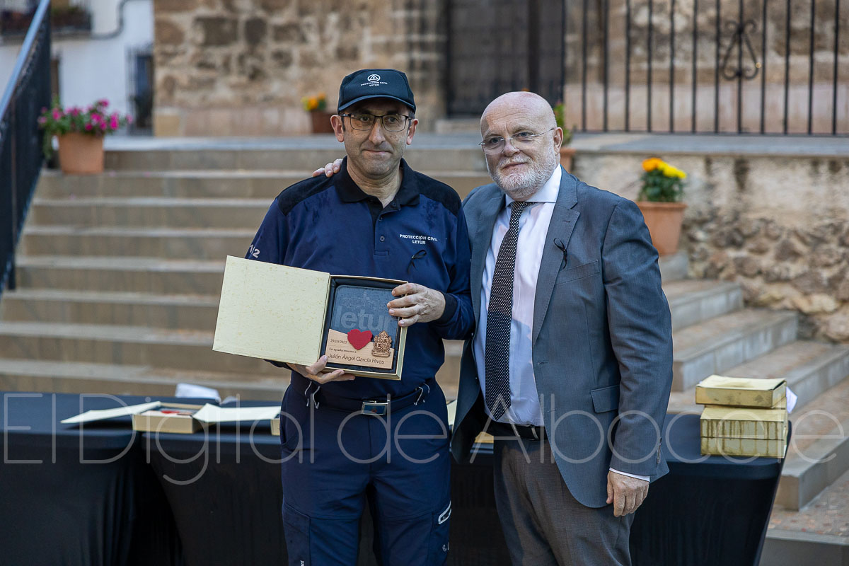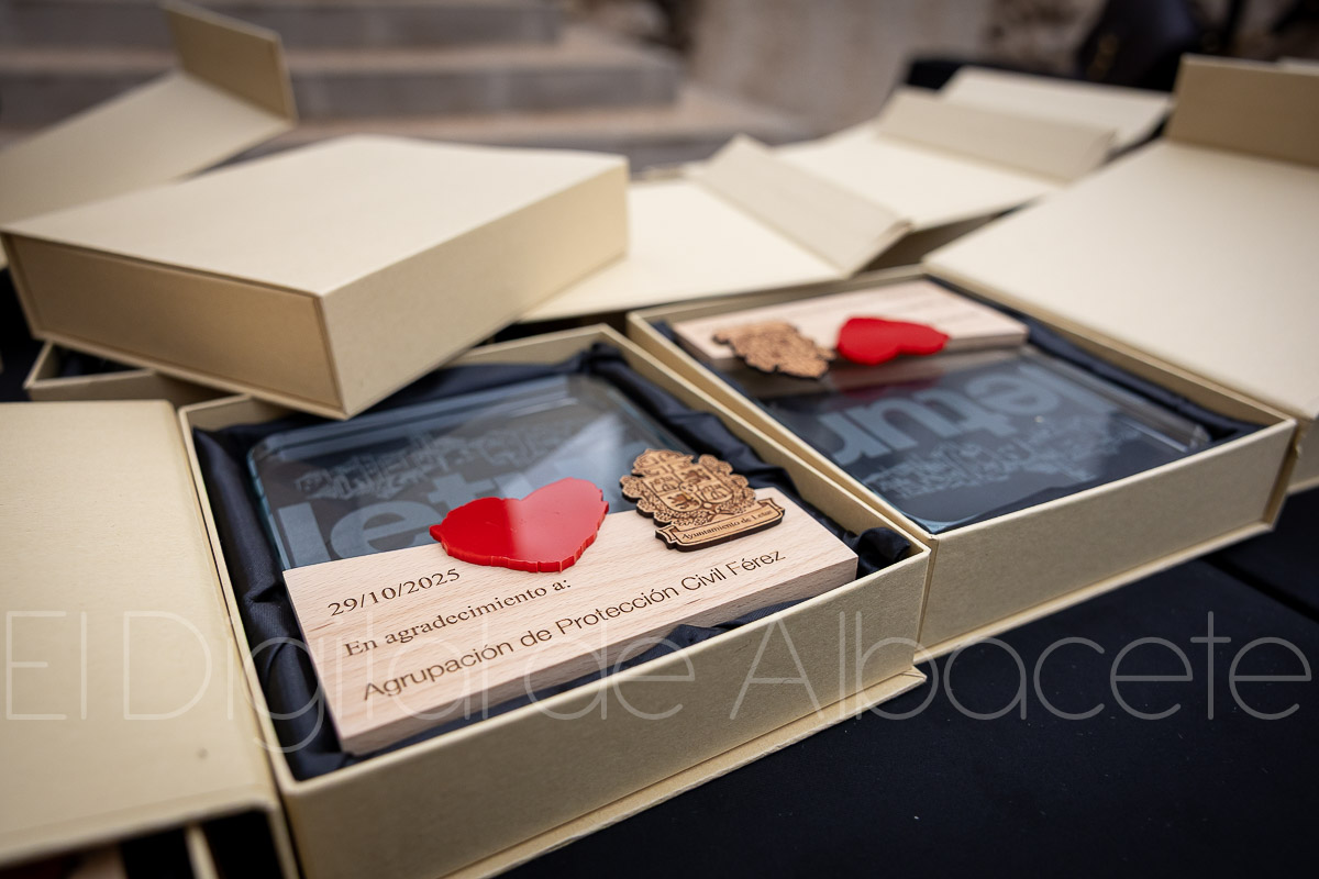 Así, el Ayuntamiento de Letur entregaba placas de reconocimiento a la Junta de Comunidades de Castilla-La Mancha, Delegación Provincial de la Junta en Albacete, Diputación de Albacete, Dirección General de Protección Ciudadana de la Junta, Delegación Provincial de Bienestar Social, Coordinación de Emergencias de la Junta, Subdelegación del Gobierno, Agentes Medioambientales de la Junta, servicios técnicos de la Diputación, GOE Valencia III, Unidad canina de la UME, Comandancia de la Guardia Civil de Albacete, Guardia Civil de Hellín y Letur, Seprona, Servicio cinológico de la Guardia Civil, Bomberos del SEPEI, Bomberos del Ayuntamiento de Albacete, Ayuntamiento y Policía Local de Elche de la Sierra, Ayuntamiento de Férez, Ayuntamiento de Socovos, GEACAM, SESCAM, Mancomunidad de Los Canales de Taibilla, Protección Civil de Férez, Socovos, Elche de la Sierra y Letur. Igualmente, el Consistorio de Letur también mostraba su agradecimiento a Cruz Roja, al párroco de Nuestra Señora de la Asunción, Ignacio Requena; Cáritas Diocesana de Albacete, Cáritas parroquial de Letur, Colegio de Arquitectos de Albacete, Colegio Nuestra Señora de la Asunción de Letur, Asociación de Empresarios de Hostelería de Albacete, TRAGSA Albacete, y otras empresas, entidades y voluntarios que no dudaron en estar presentes cuando Letur más lo necesitaba. Finalmente, con un sonoro aplauso de sus vecinos recogía una mención especial Ángel López Álvarez, quien arriesgó su vida por salvar la de otros.