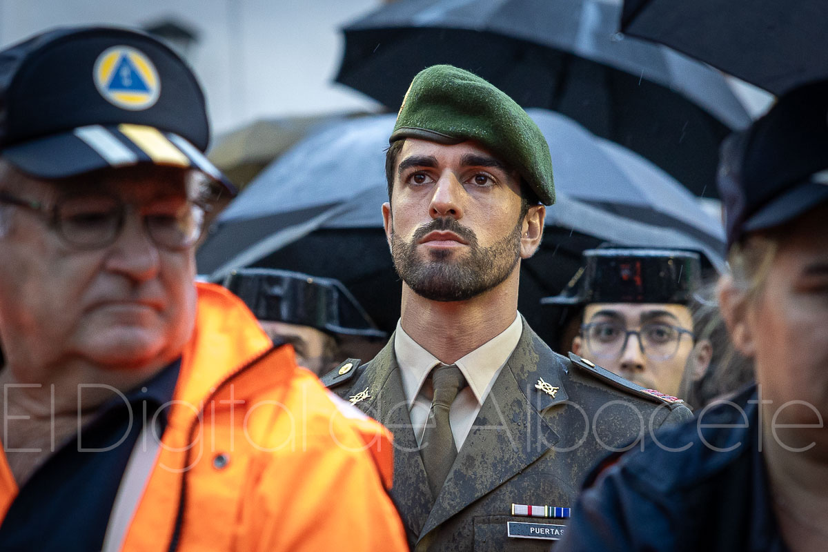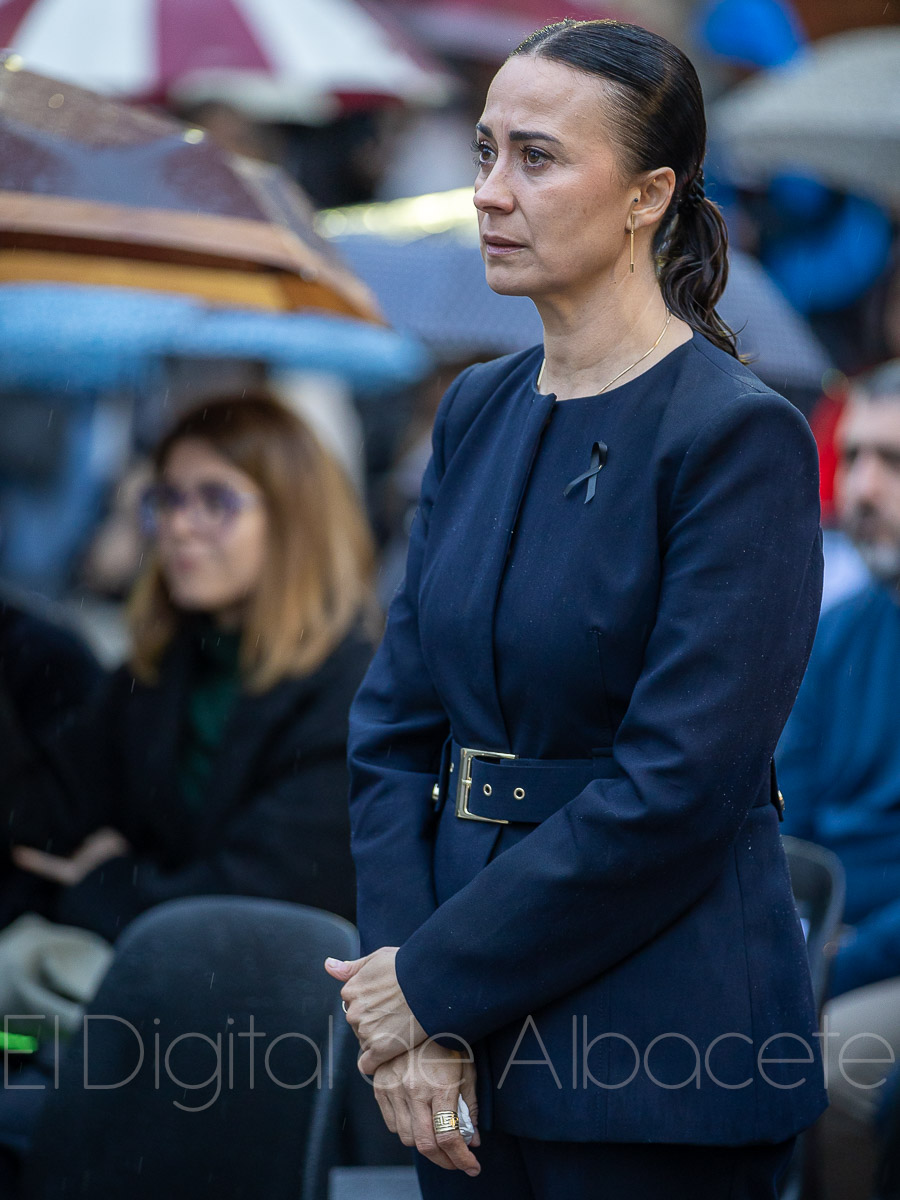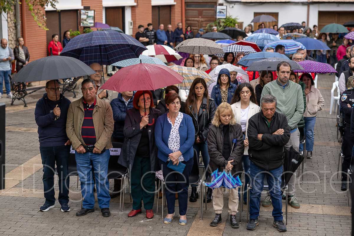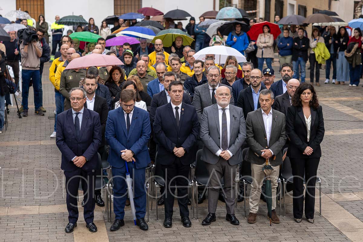 La Plaza Mayor de Letur acogía en la tarde de este miércoles, 29 de octubre, un acto institucional en homenaje a las víctimas de la DANA. No hay un solo día en que el recuerdo de Jonathan, Mónica, Juan, Manuel, Antonia y Dolores no esté presente entre los vecinos de Letur. Acompañados por el toque de las campanas de la iglesia de este pueblo se daba lectura a los nombres de quienes perdieron la vida a consecuencia de la riada, realizando el párroco del municipio, Ignacio Requena, una sencilla oración por estos vecinos de Letur. Tras este instante los asistentes a este acto institucional guardaban bajo la lluvia un minuto de silencio por su memoria.