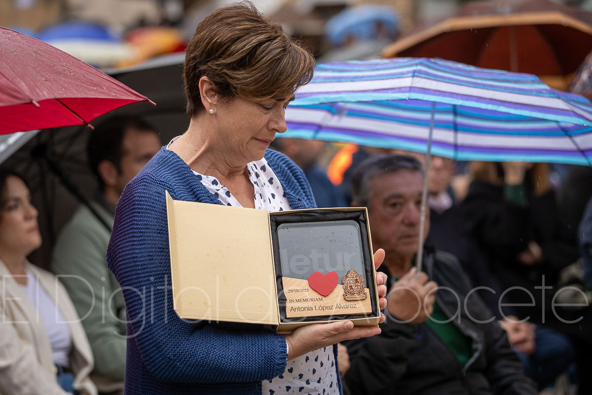 Un dolor compartido el que siente Letur por la pérdida de estos seis vecinos. Rostros de tristeza y lágrimas en los ojos afloraban este 29 de octubre entre los vecinos de este pueblo. Así, como muestra del cariño que siente la localidad por las familias de estos vecinos hacía entrega el alcalde de Letur, Sergio Marín, una placa in memoriam, a sus familiares.