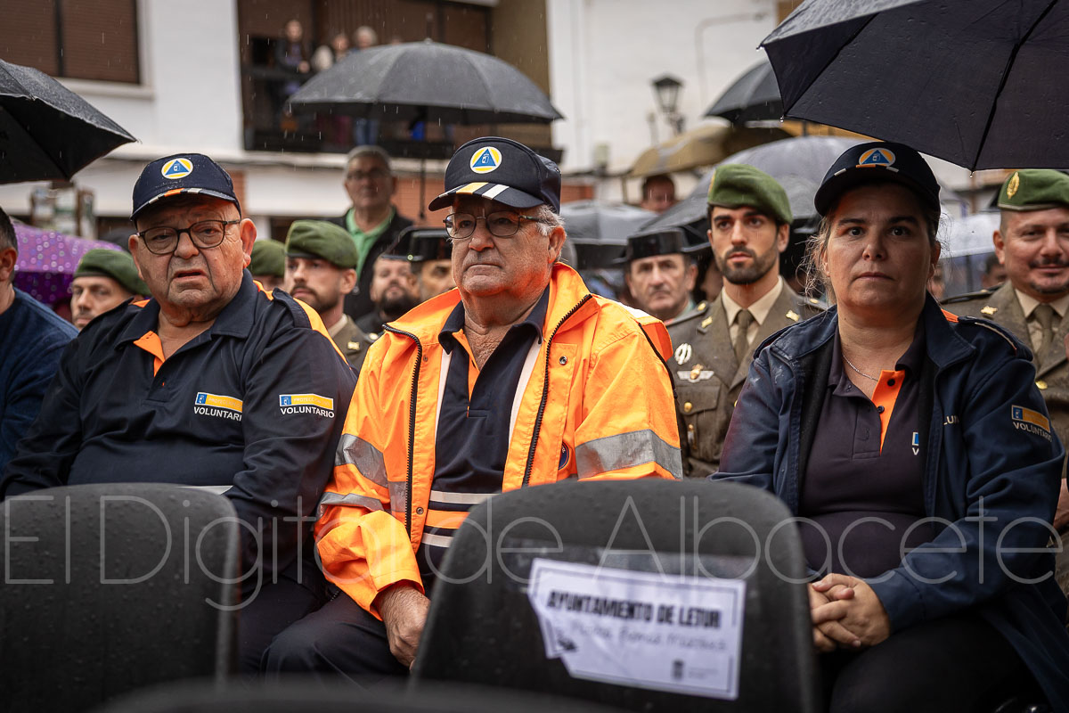 Un homenaje al que asistían el alcalde de Letur, Sergio Marín; el presidente de la Diputación de Albacete, Santiago Cabañero; el consejero de Hacienda, Administraciones Públicas y Transformación Digital, Juan Alfonso Ruiz Molina; el consejero de Fomento, Nacho Hernando; el subdelegado del Gobierno en Albacete, Miguel Juan Espinosa; y el presidente del PP de Castilla-La Mancha, Paco Núñez, entre otras autoridades civiles y militares.