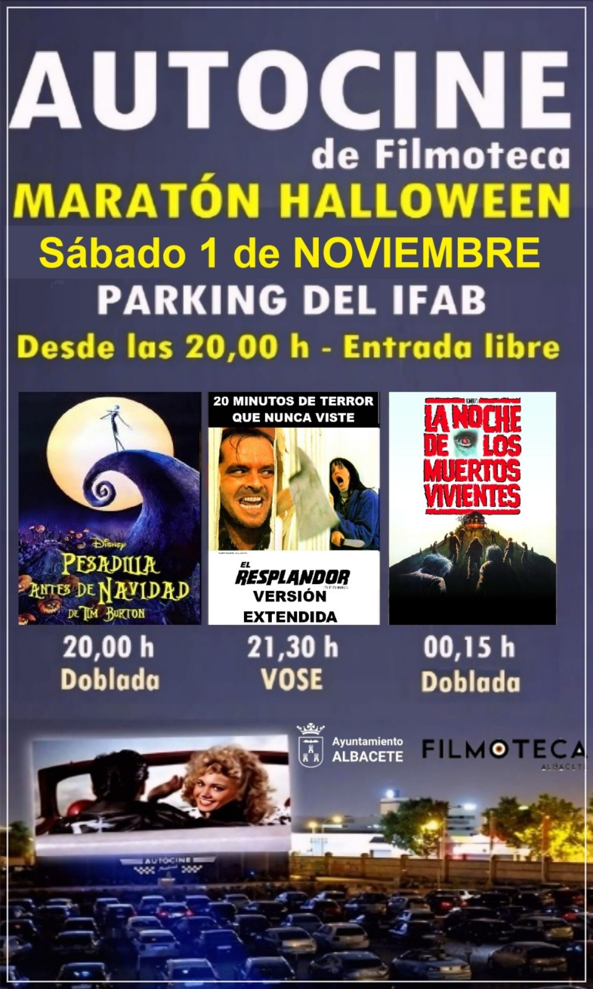 Este sábado, 1 de noviembre, los vecinos de Albacete tienen una cita con el cine muy especial. A partir de las 20:00 horas en el parking de la IFAB tendrá lugar el Autocine de Halloween, organizado por la Filmoteca en colaboración con el Ayuntamiento de Albacete, al más puro estilo americano, para disfrutar de una noche bajo las estrellas.