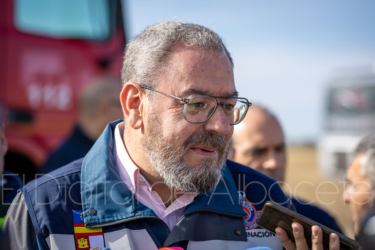 El Gobierno de Castilla-La Mancha ha realizado hoy un simulacro de una situación de emergencia por un accidente aéreo en el aeropuerto de Albacete, en el que han participado más 200 efectivos de los diferentes grupos de acción y figurantes.