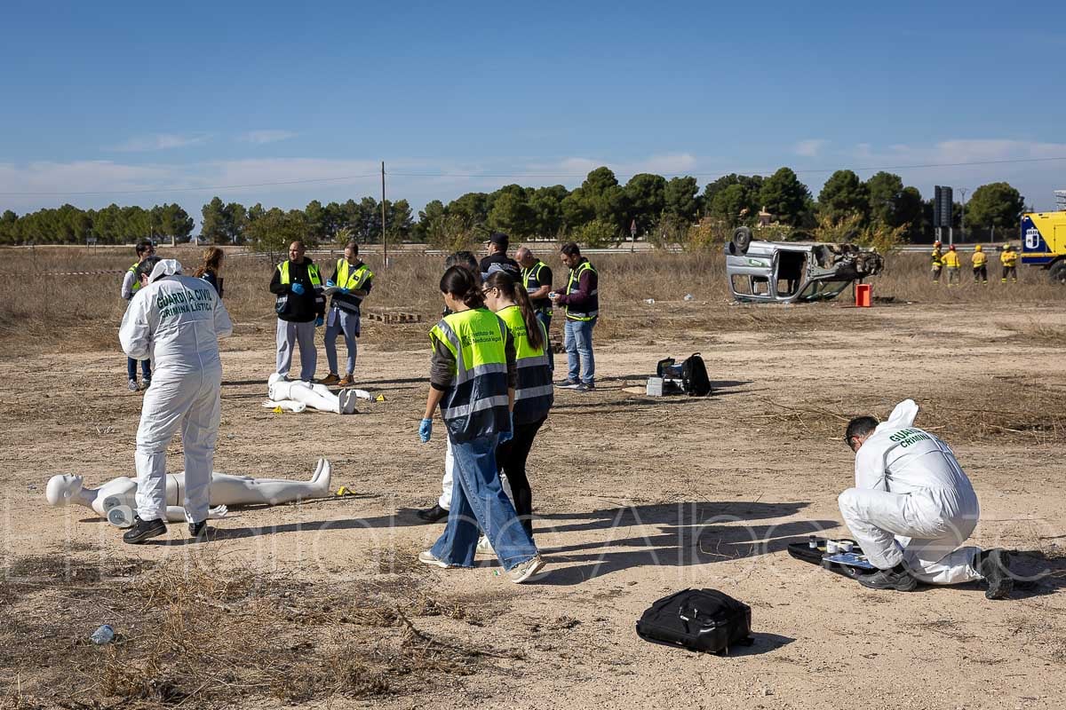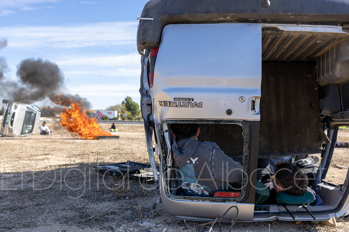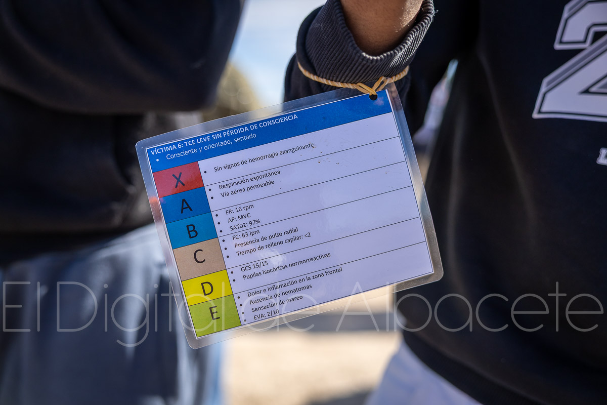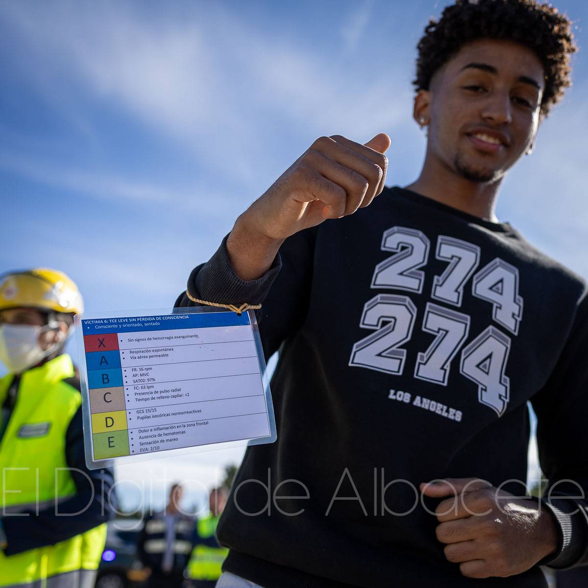 En este simulacro han participado efectivos de Guardia Civil, Cuerpo Nacional de Policía, Policía Local de Albacete, bomberos del Ayuntamiento de Albacete; personal adscrito al Plan Especial de Emergencias por Incendios Forestales en Castilla-La Mancha (INFOCAM); personal del Servicio de Salud de Castilla-La Mancha (SESCAM); Instituto Médico Legal y Forense; Cruz Roja; la Agrupación de Protección Civil de Albacete, así como los servicios de Protección Ciudadana, de Protección Civil y del Servicio de Atención y Coordinación de Urgencias y Emergencias 1-1-2 de Castilla-La Mancha. A ellos se han sumado alumnos de Formación Profesional del IES ‘Fernando Zóbel’ de los ciclos formativos relacionados con Emergencias Sanitarias, Emergencias y Protección Civil.