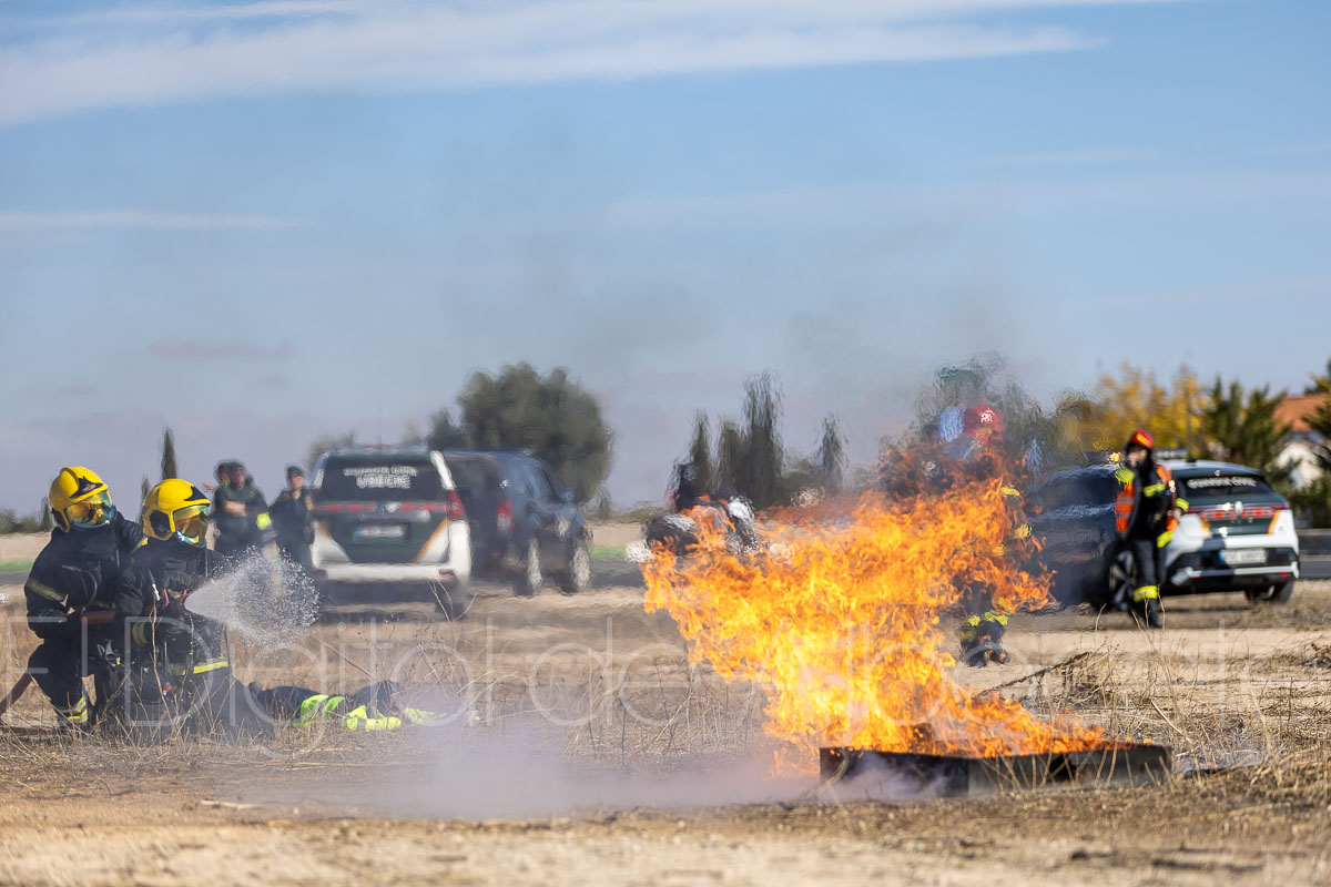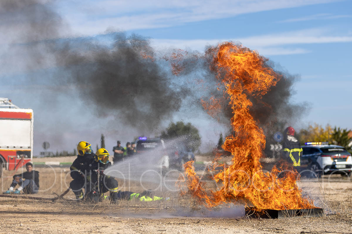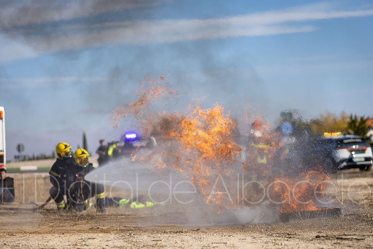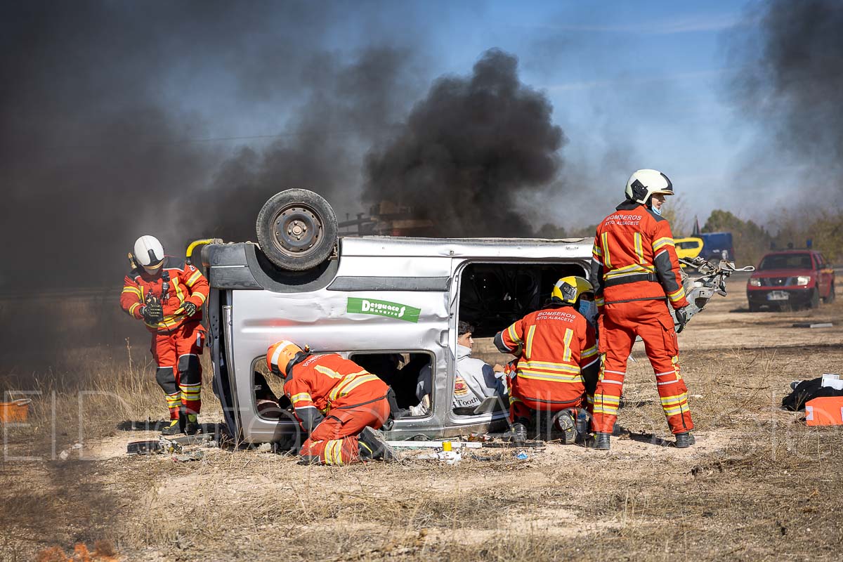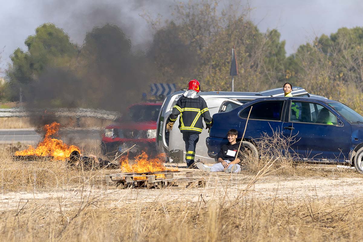 En este simulacro han participado efectivos de Guardia Civil, Cuerpo Nacional de Policía, Policía Local de Albacete, bomberos del Ayuntamiento de Albacete; personal adscrito al Plan Especial de Emergencias por Incendios Forestales en Castilla-La Mancha (INFOCAM); personal del Servicio de Salud de Castilla-La Mancha (SESCAM); Instituto Médico Legal y Forense; Cruz Roja; la Agrupación de Protección Civil de Albacete, así como los servicios de Protección Ciudadana, de Protección Civil y del Servicio de Atención y Coordinación de Urgencias y Emergencias 1-1-2 de Castilla-La Mancha. A ellos se han sumado alumnos de Formación Profesional del IES ‘Fernando Zóbel’ de los ciclos formativos relacionados con Emergencias Sanitarias, Emergencias y Protección Civil.