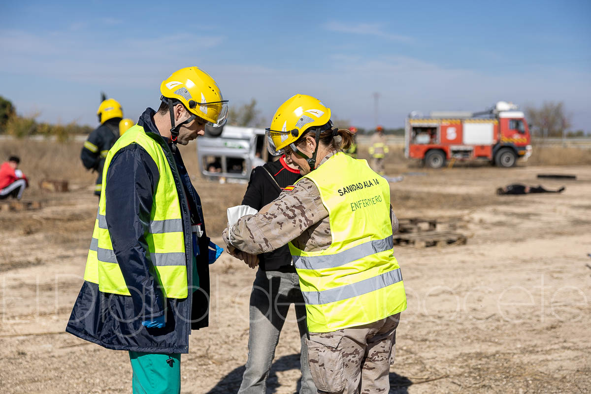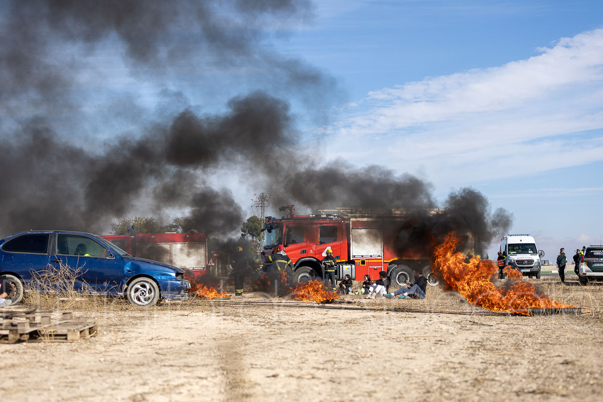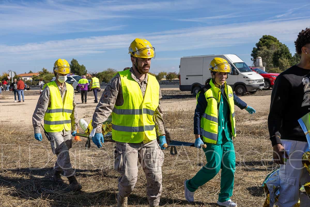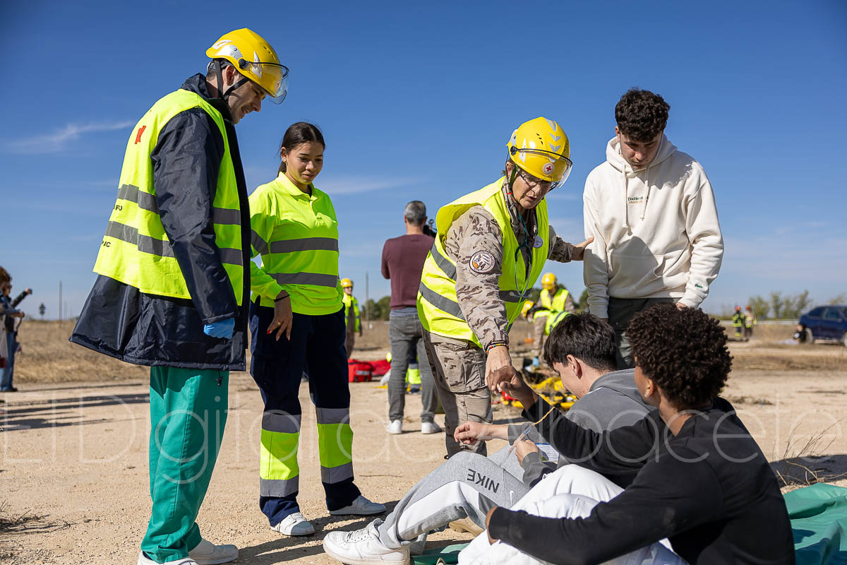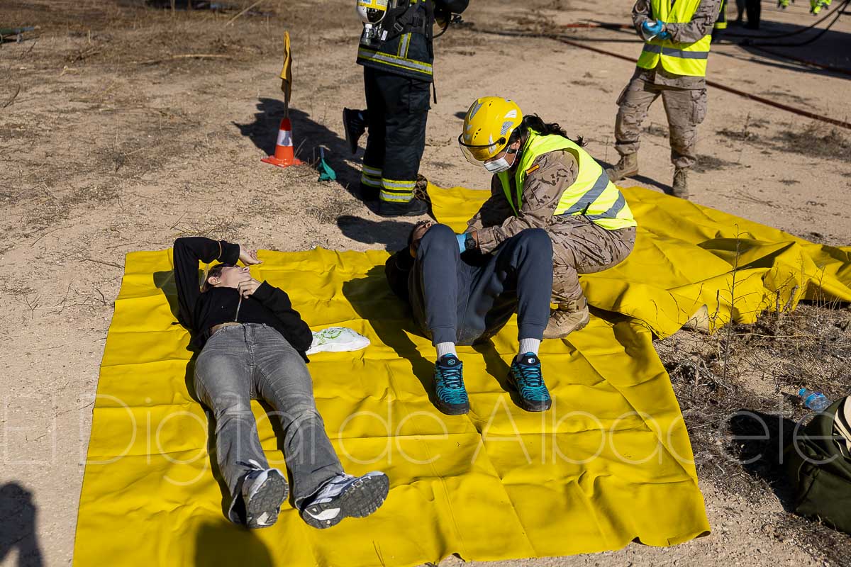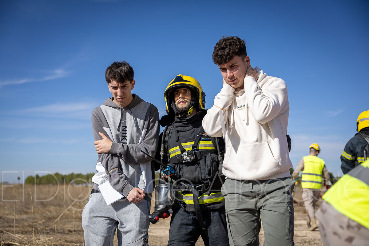 En la zona del impacto, de las 26 personas que se encontraban a bordo (21 pasajeros y 5 tripulantes), algunas acaban atrapadas entre los restos del avión, registrándose un número indeterminado de heridos y atrapados. En este escenario, alumnos de Formación Profesional del IES ‘Fernando Zóbel’ de los ciclos formativos relacionados con Emergencias Sanitarias, Emergencias y Protección Civil, colaborarán como figurantes.