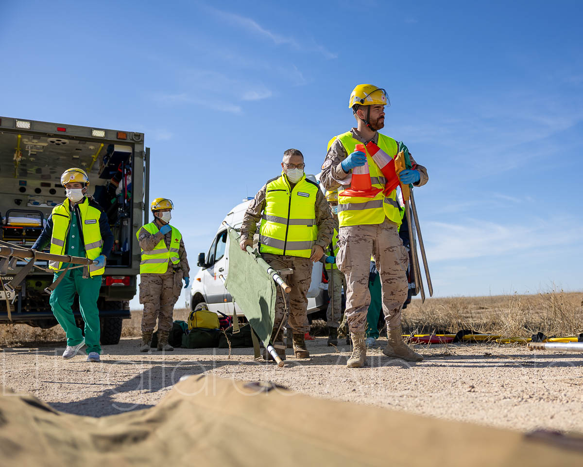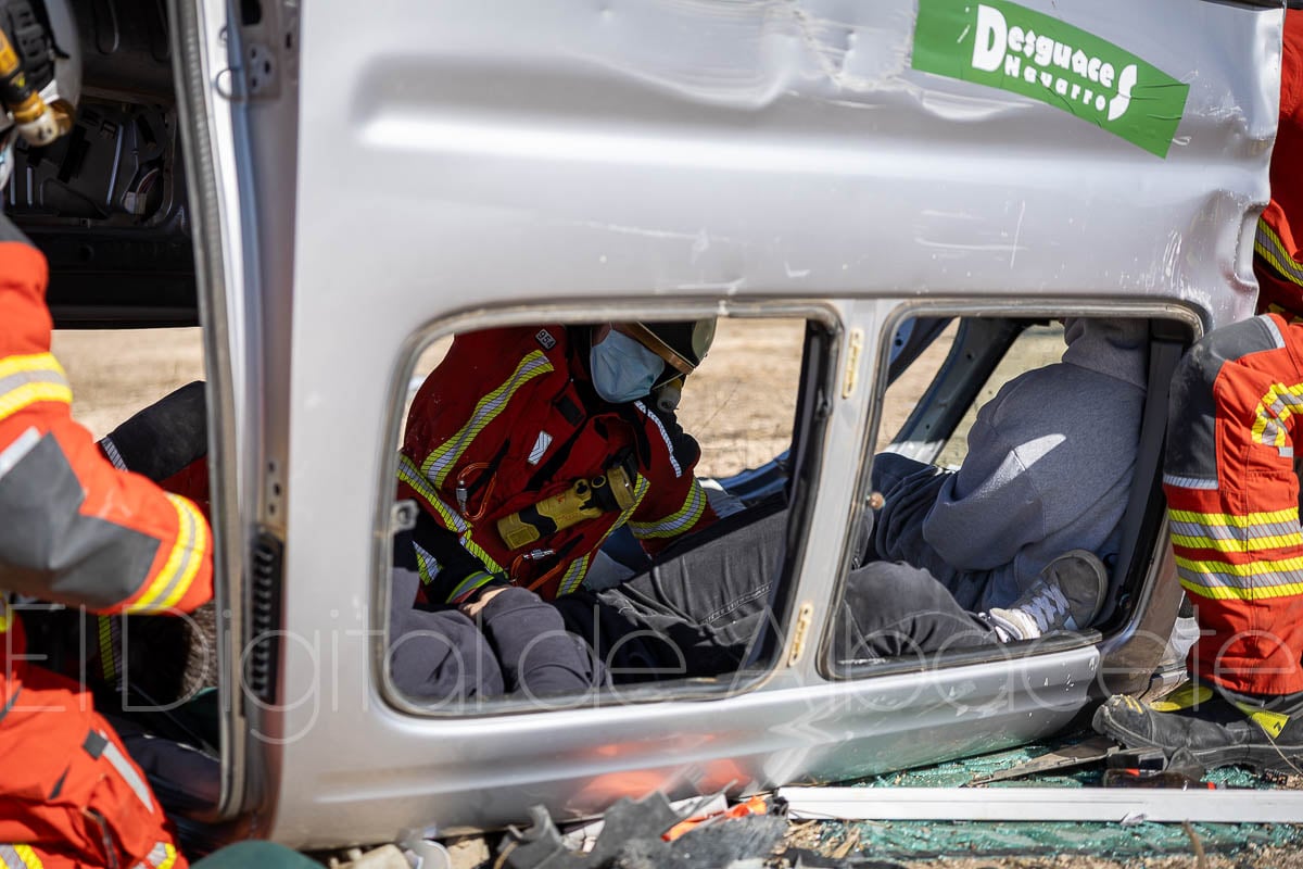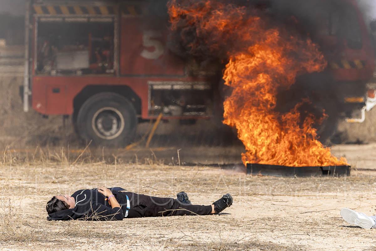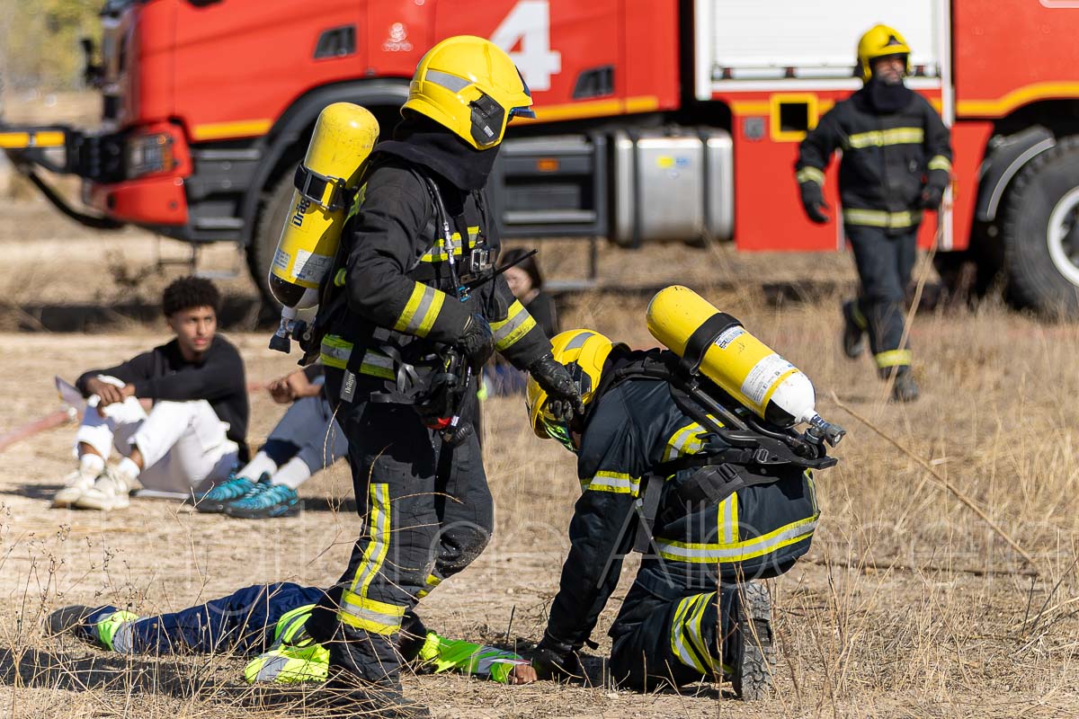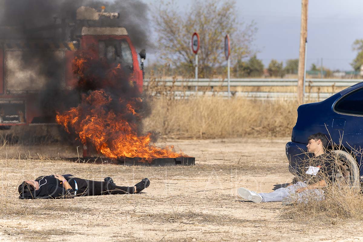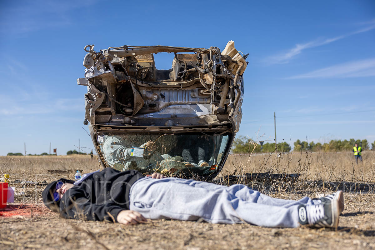 En la zona del impacto, de las 26 personas que se encontraban a bordo (21 pasajeros y 5 tripulantes), algunas acaban atrapadas entre los restos del avión, registrándose un número indeterminado de heridos y atrapados. En este escenario, alumnos de Formación Profesional del IES ‘Fernando Zóbel’ de los ciclos formativos relacionados con Emergencias Sanitarias, Emergencias y Protección Civil, colaborarán como figurantes.