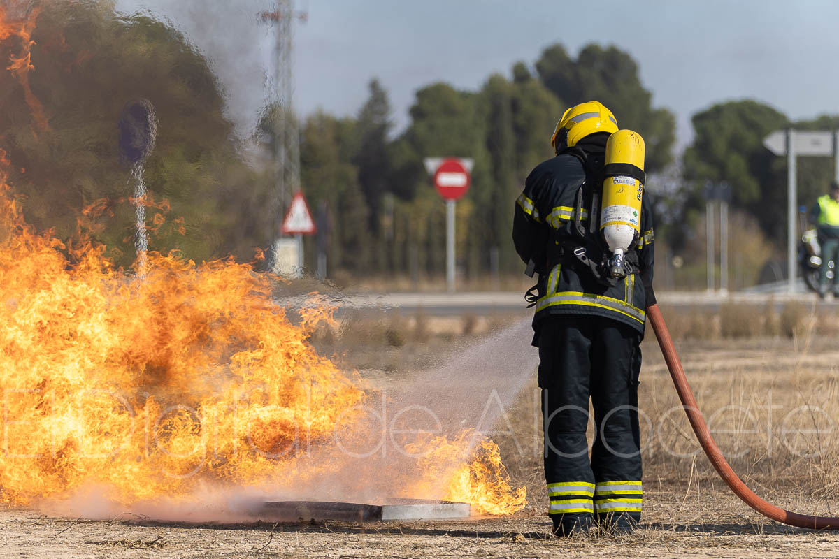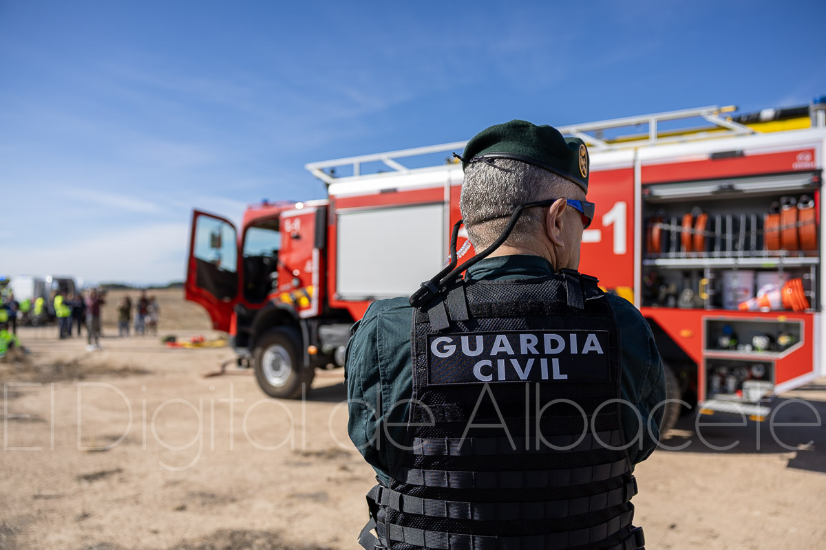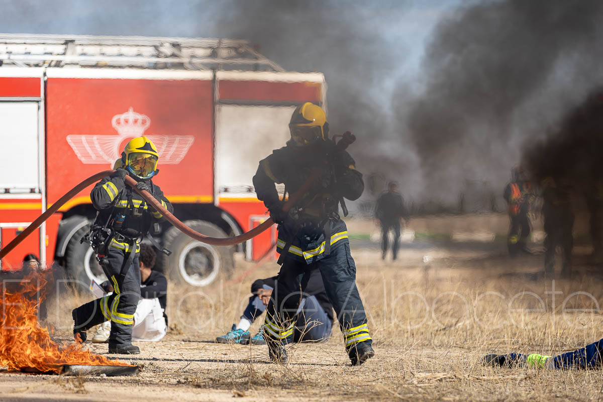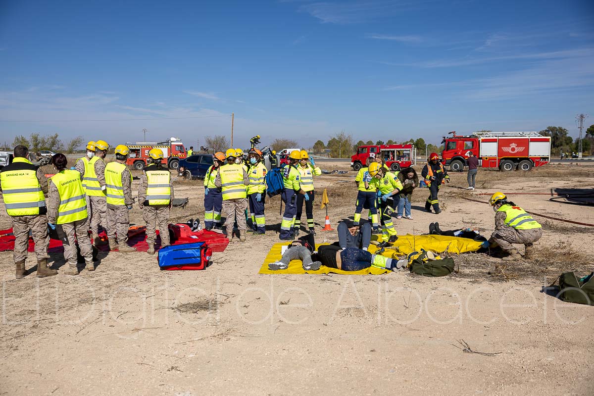 Hay que recordar que el aeropuerto civil de Albacete se encuentra en las instalaciones de la base militar aérea, por lo que hay efectivos de emergencia civiles y militares, de extinción y seguridad, que actúan conjuntamente en un siniestro de estas características.