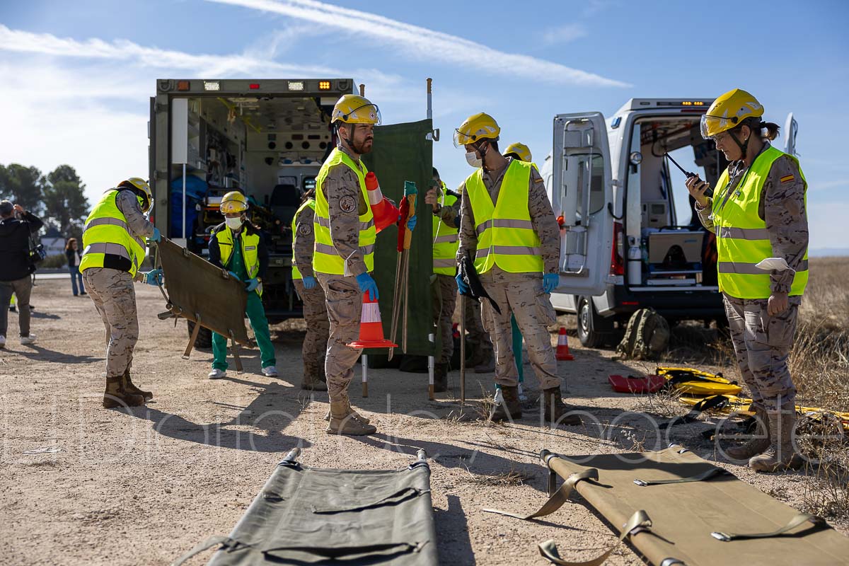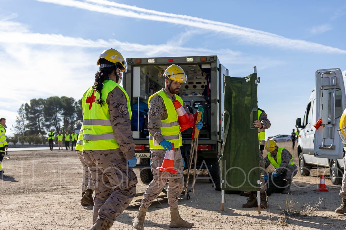 Una vez iniciado el ejercicio, y conocido el alcance inicial del accidente, que ha sido comunicado al Servicio de Emergencias 1-1-2 por la torre del control del aeropuerto, y tras la activación del Plan de Reacción de la Base Militar, del Plan de Autoprotección del aeropuerto y del Plan Territorial de Emergencia Municipal de Albacete (PLATEMUN), el Gobierno regional declara la activación del Plan Territorial de Castilla-La Mancha (PLATECAM), en Fase de Emergencia, -Situación Operativa 1-, y se pone al frente activando a todos los grupos de acción para dar respuesta a la situación.