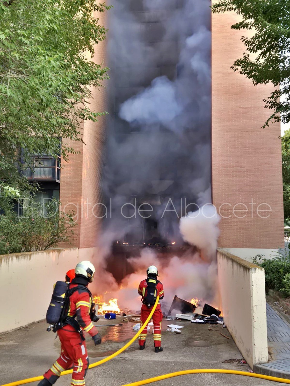 El Servicio de Extinción de Incendios del Ayuntamiento de Albacete acudió de inmediato al lugar y sofocó el fuego con rapidez, limitando los daños a afectaciones materiales leves en el rellano. No se registraron heridos.