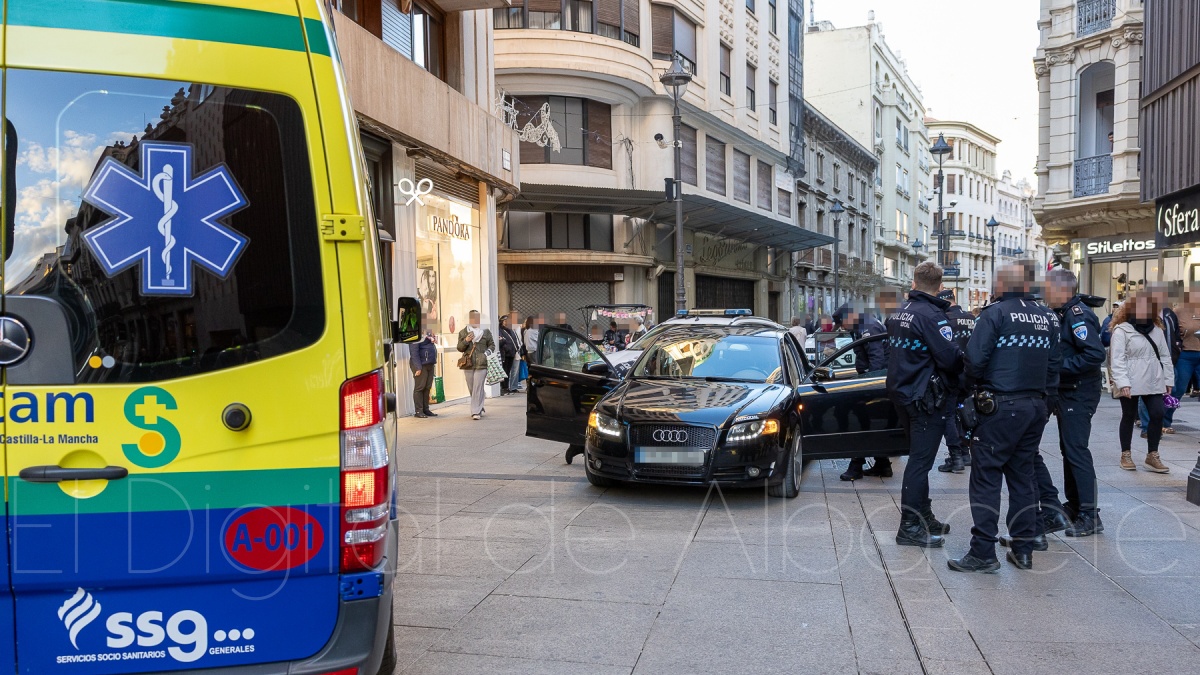 Las manecillas del reloj estaban a punto de marcar las 17.30 horas de este jueves y la centralita de la Jefatura de la Policía Local de Albacete comenzó a echar humo, pues las llamadas de testigos presenciales se agolpaban indicando que un coche circulaba a gran velocidad por la Calle Concepción a pesar de ser peatonal.
