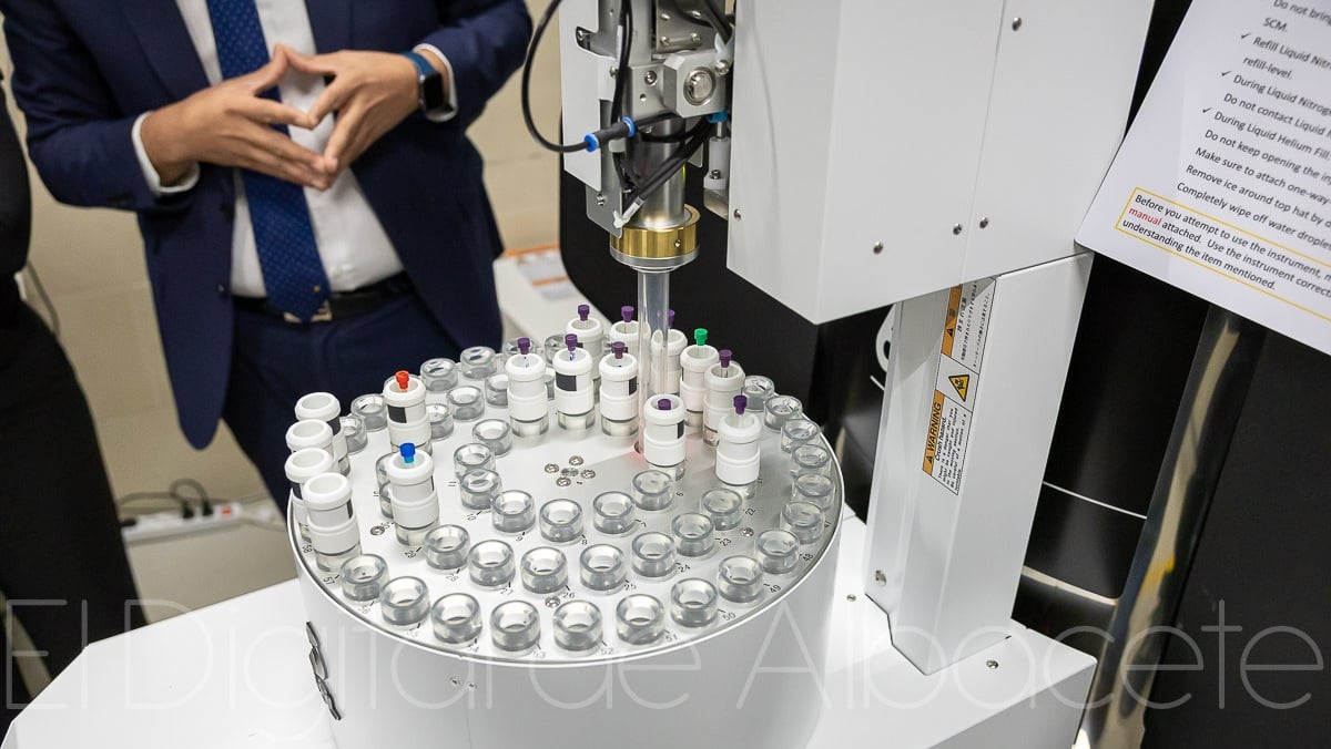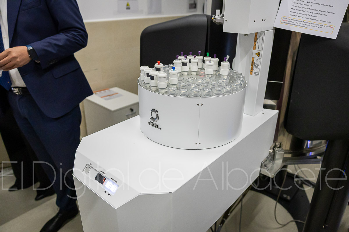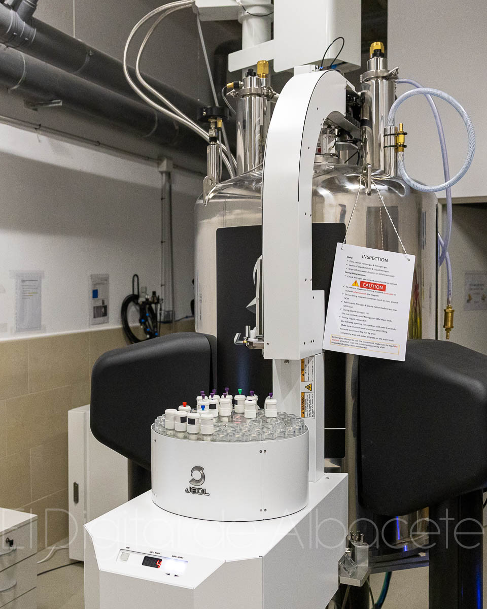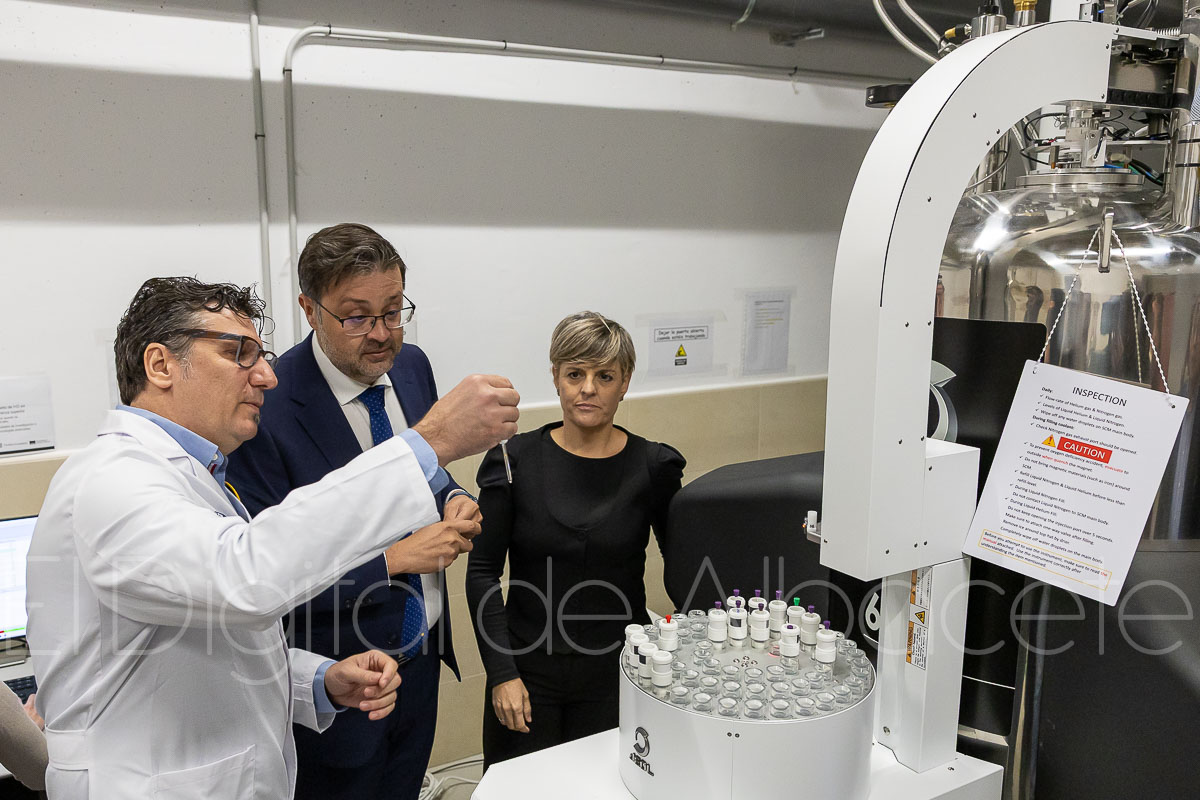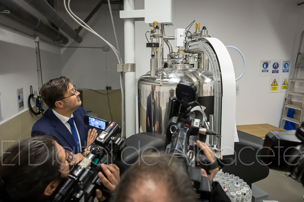 Tal y como ha explicado Amador Pastor, el equipo, que se ha instalado en el edificio Bioincubadora de Albacete, es un espectrómetro de resonancia magnética nuclear de 600 MHz cuyo objetivo fundamental es la realización de espectros para el análisis estructural de compuestos químicos.
