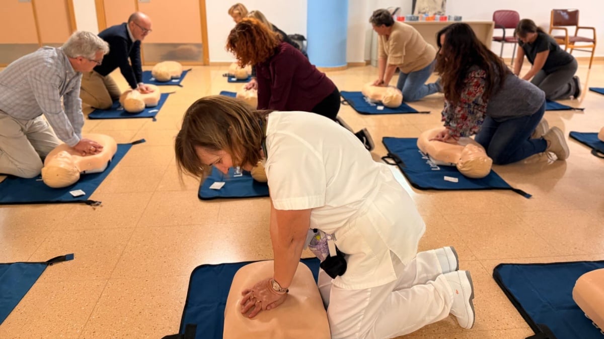 El curso en San Vicente de Paúl, en el que participan en torno a 20 trabajadores y trabajadoras, incluye contenidos teóricos y prácticos sobre reanimación cardiopulmonar básica, actuación ante la obstrucción de la vía aérea por cuerpo extraño y uso del DEA.