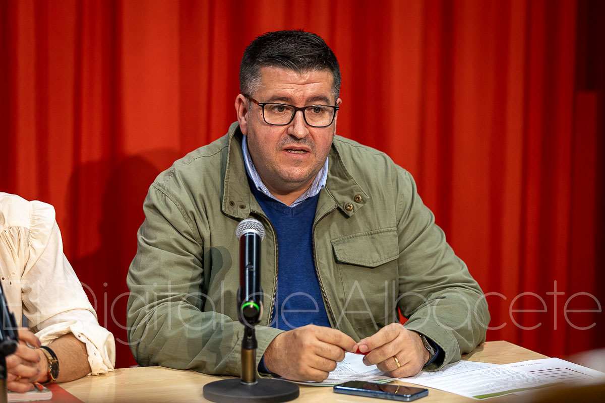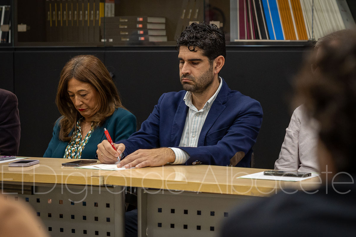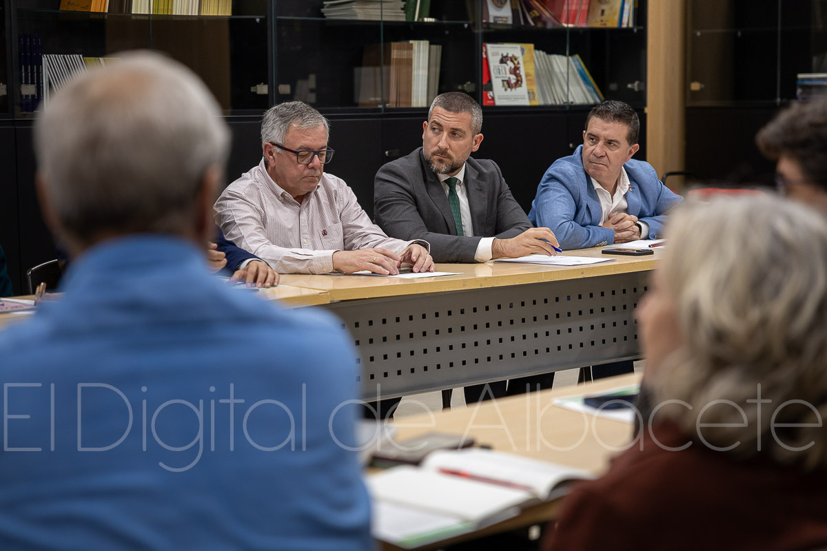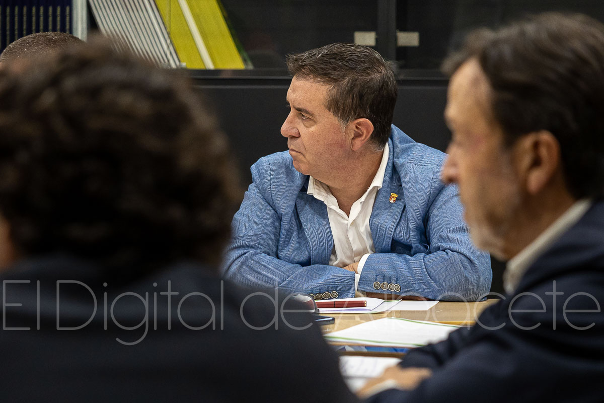 El presidente de la Diputación de Albacete, Santi Cabañero, junto al diputado del Área Social, José González, ha participado este viernes en la primera reunión del Pacto Social por el Ferrocarril de Albacete, promovido por CC.OO., UGT y la Confederación de Empresarios de Albacete (FEDA), de la que ha salido un manifiesto que reclama un ferrocarril público, social y sostenible como eje para la vertebración territorial, la fijación de población y el desarrollo socioeconómico de la provincia.