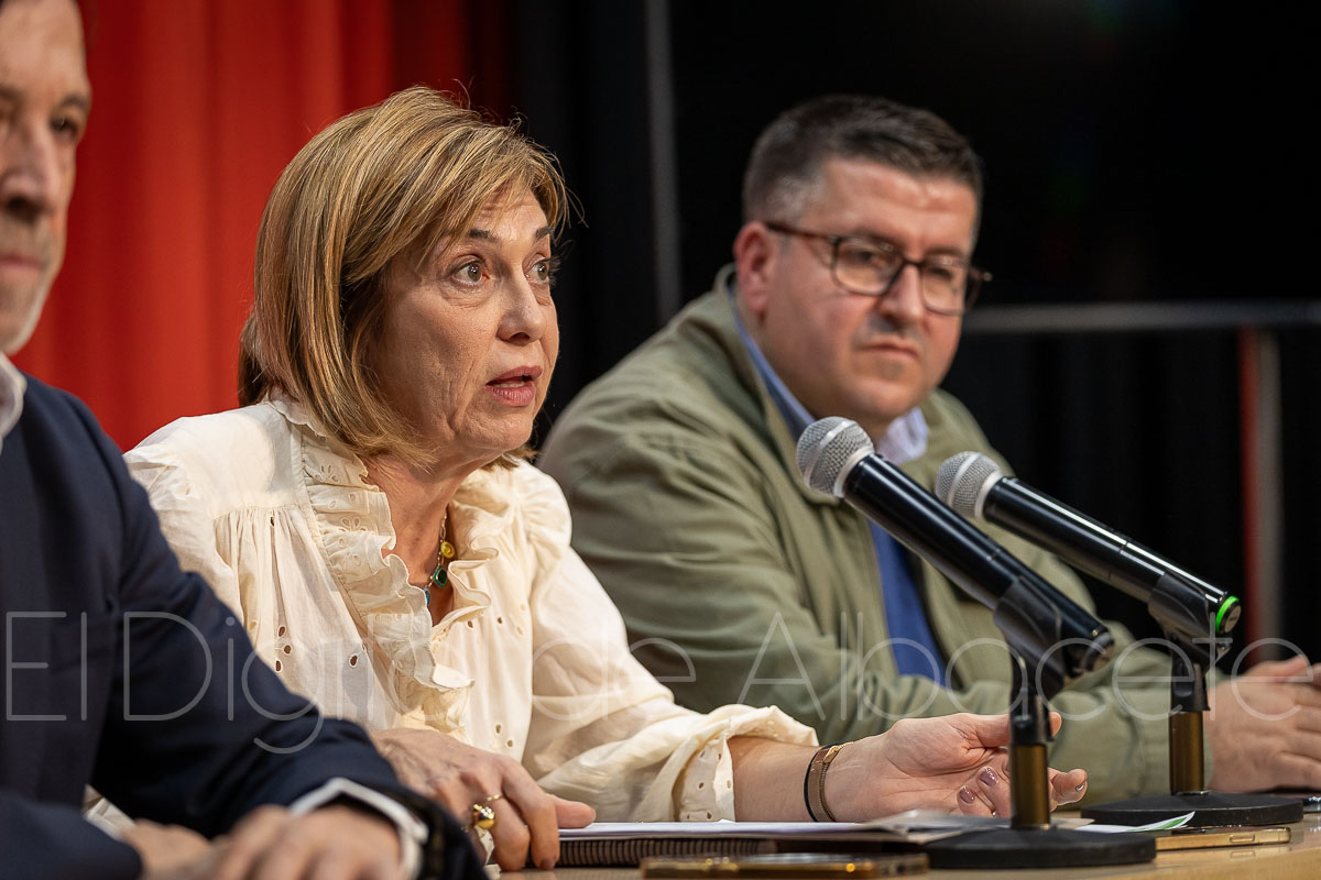 El Pacto Social por el Ferrocarril de Albacete -pacto promovido por los agentes sociales, UGT Albacete, CCOO Albacete y FEDA- ha anunciado hoy la constitución de una mesa de trabajo permanente para el estudio y definición de propuestas en materia de comunicaciones ferroviarias dirigidas a completar las necesidades de Albacete y su provincia. Así lo han puesto de manifiesto sus integrantes –el secretario provincial de UGT, Francisco Javier González; la secretaria general de FSC CCOO CLM, Carmen Juste; y el presidente de la Confederación de Empresarios de Albacete, Artemio Pérez Alfaro- en la reunión celebrada en el Teatro Circo, la primera que tiene lugar desde la firma de este compromiso, en la cual también han participado el presidente de la Diputación, Santiago Cabañero; el delegado provincial de Fomento en Albacete, Julen Sánchez; y los alcaldes de Albacete, Hellín, Tobarra, Almansa, Chinchilla y Pozo Cañada, quienes se han adherido al manifiesto elaborado en defensa de un ferrocarril público, social y sostenible.