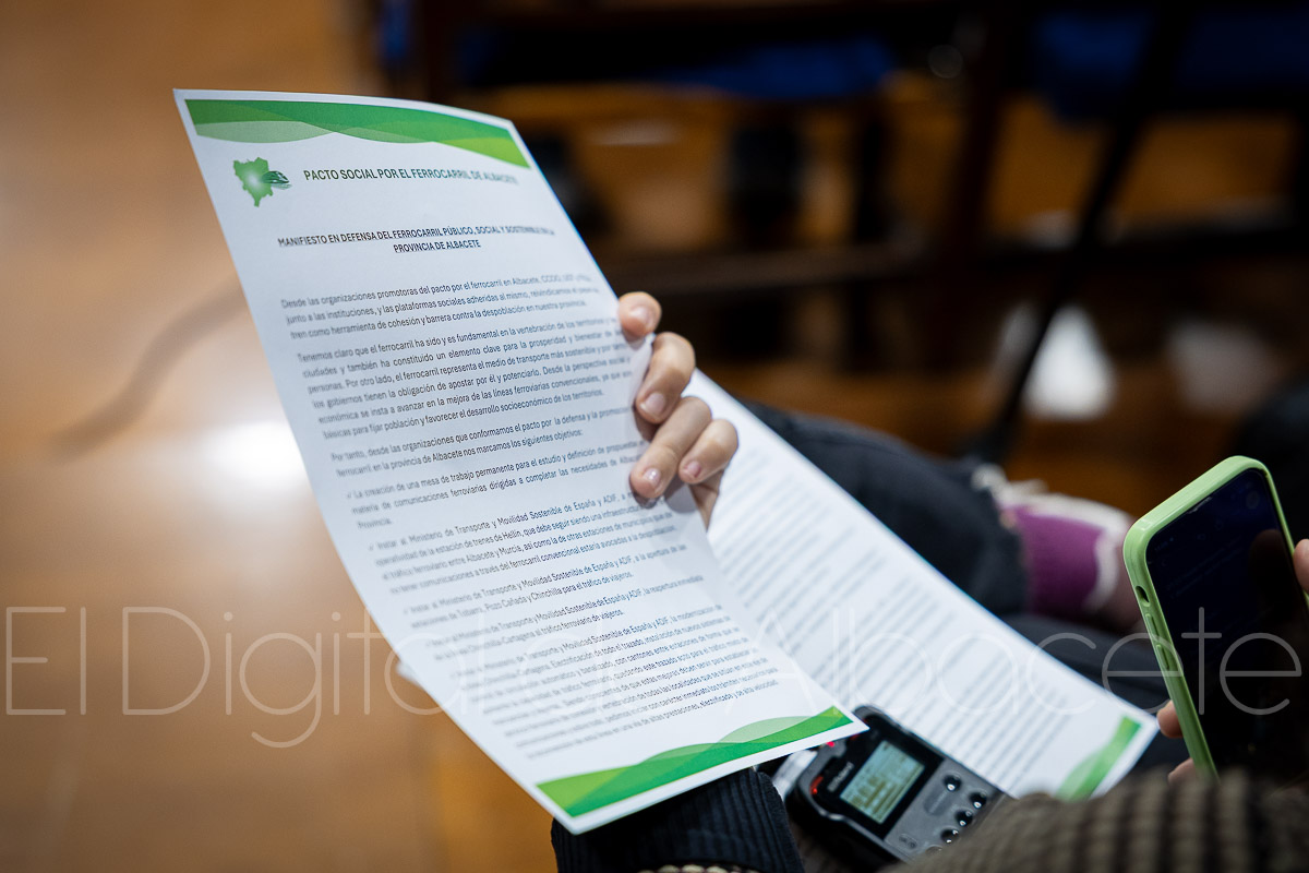 El Pacto Social por el Ferrocarril de Albacete ha instado igualmente a avanzar en la mejora de las líneas ferroviarias convencionales por ser éstas básicas para fijar población y favorecer el desarrollo económico de los territorios. No en vano, tanto las organizaciones promotoras del pacto como las instituciones y las plataformas sociales adheridas al mismo reivindican el papel del tren como herramienta de cohesión. “Tenemos claro que el ferrocarril ha sido y es fundamental en la vertebración de los territorios y las ciudades y un elemento clave para la prosperidad y bienestar de las personas”.