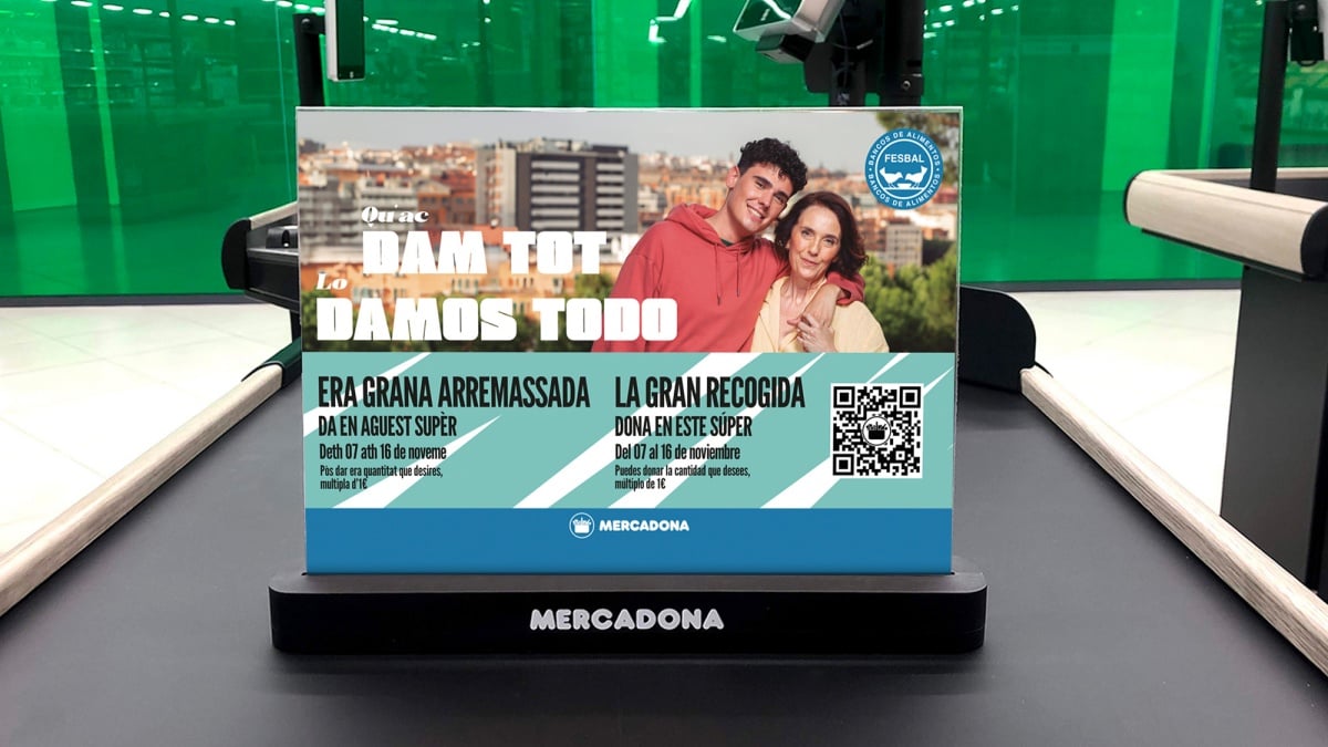 Mercadona se suma un año más a la Gran Recogida de Alimentos organizada por la Federación Española de Bancos de Alimentos (FESBAL), que arranca hoy y se prolongará hasta el 16 de noviembre. Como cada año, la compañía pone a disposición de la campaña sus puntos de venta para la recaudación de fondos, con el objetivo de dar a sus clientes la posibilidad de participar en este gran evento solidario anual a favor de los Bancos de Alimentos.