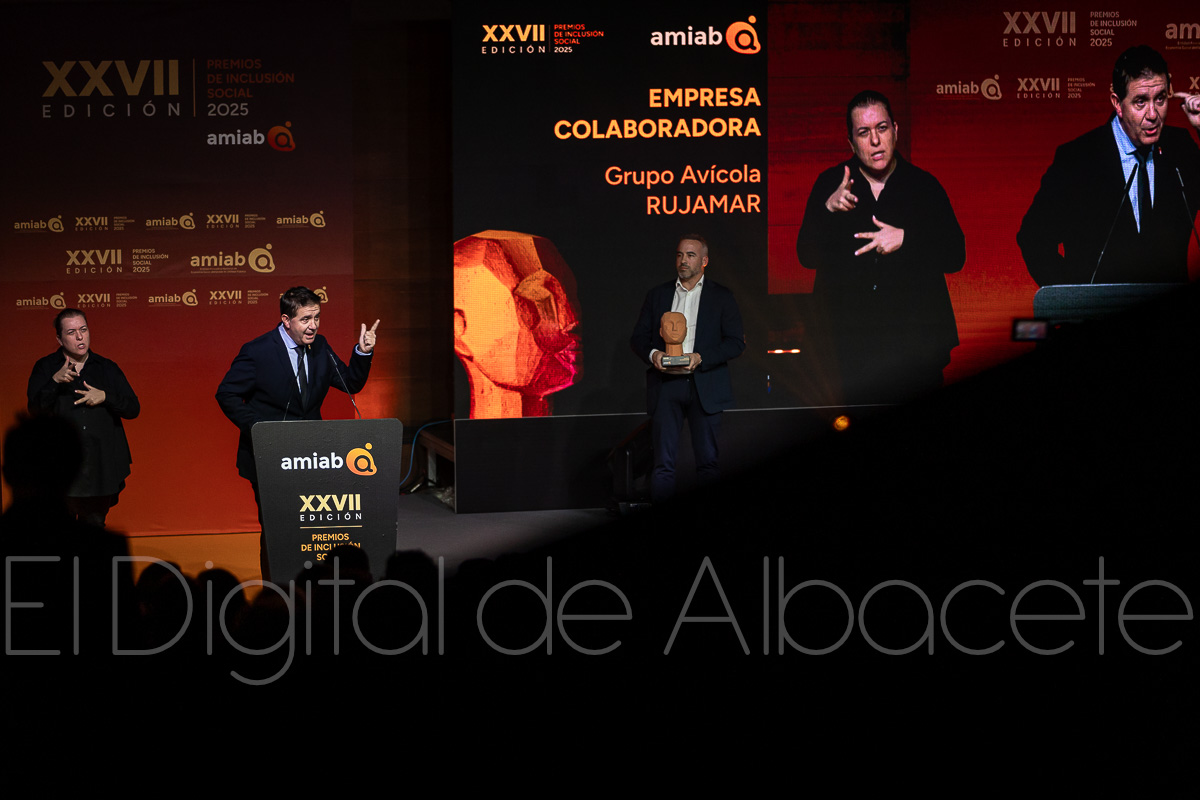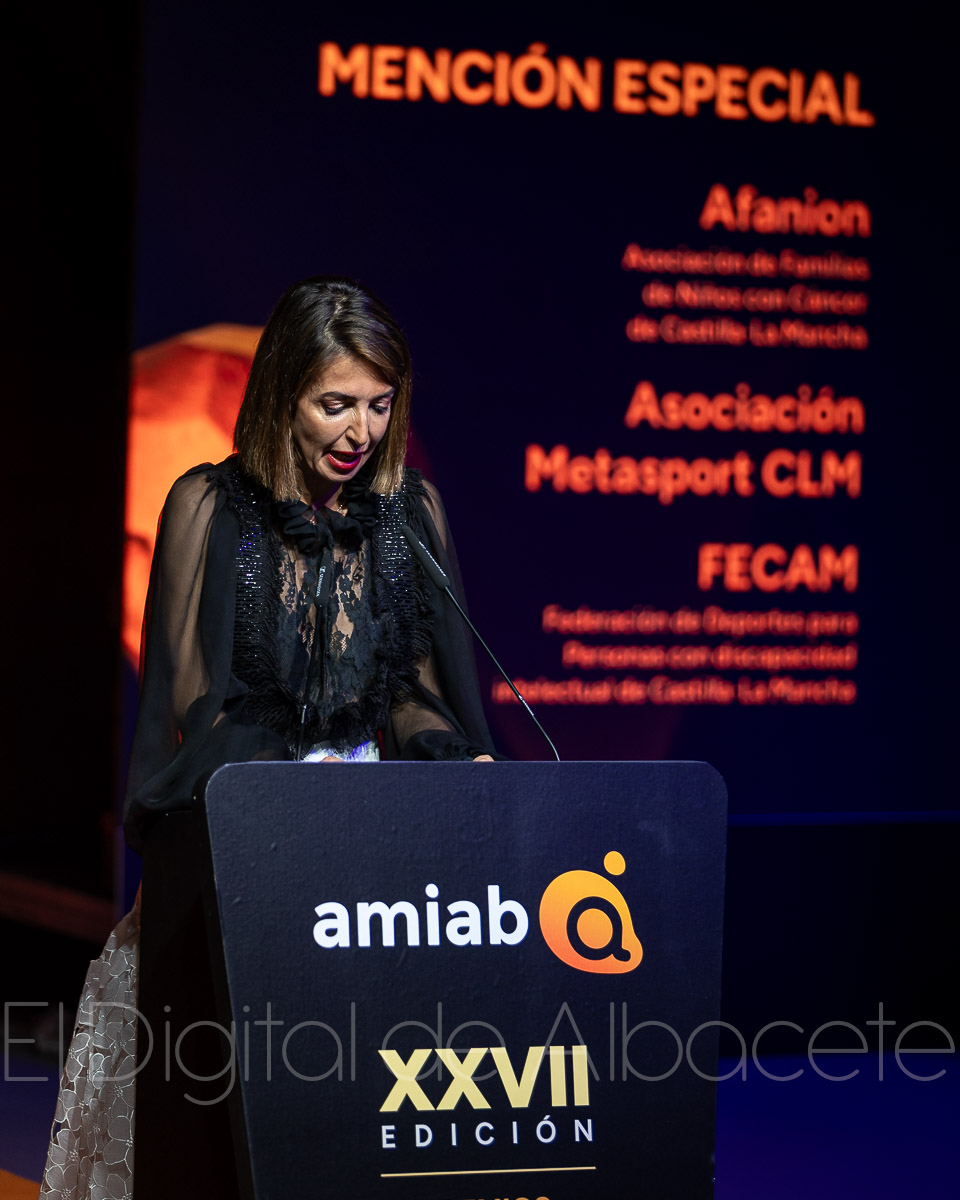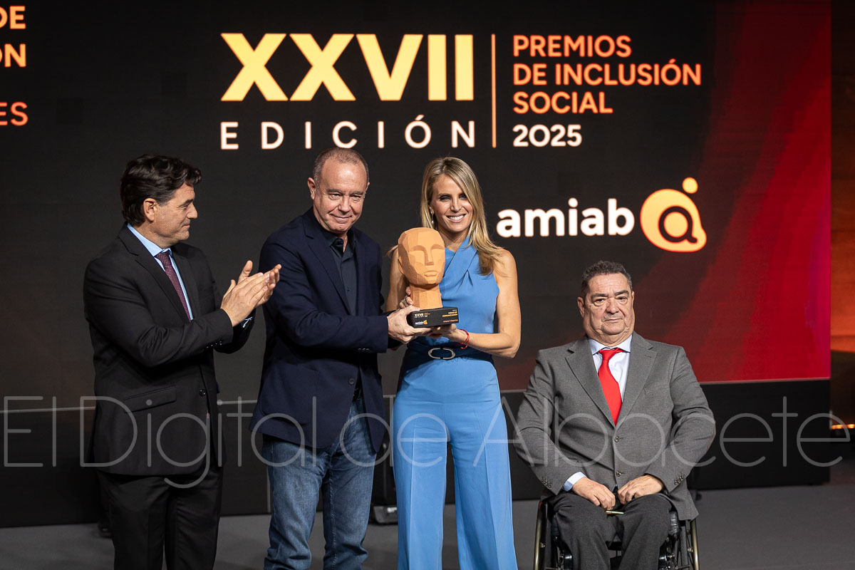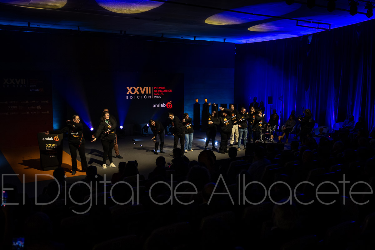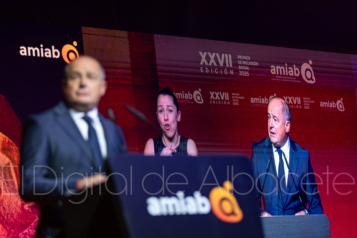 El Palacio de Congresos de Albacete acogía en la noche de este lunes, 10 de noviembre, la XXVII edición de los Premios de Inclusión Social de Amiab. Unos tradicionales galardones que en esta ocasión han sido para Antena 3 Deportes, el Congreso de los Diputados, el Comité Español de Representantes de Personas con Discapacidad (CERMI), Grupo Rujamar, la deportista Teresa Perales, el Servicio Público de Empleo Estatal (SEPE), la Asociación de Familias de Niños con Cáncer de Castilla-La Mancha AFANION, la Federación de Deportes para Personas con Discapacidad Intelectual de Castilla-La Mancha (FECAM), y Asociación para la actividad física y deporte adaptado ‘Metasport CLM’.