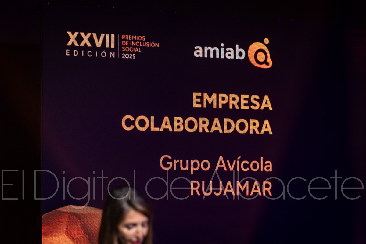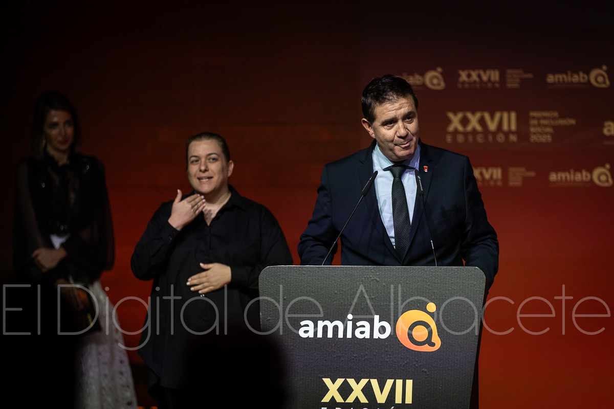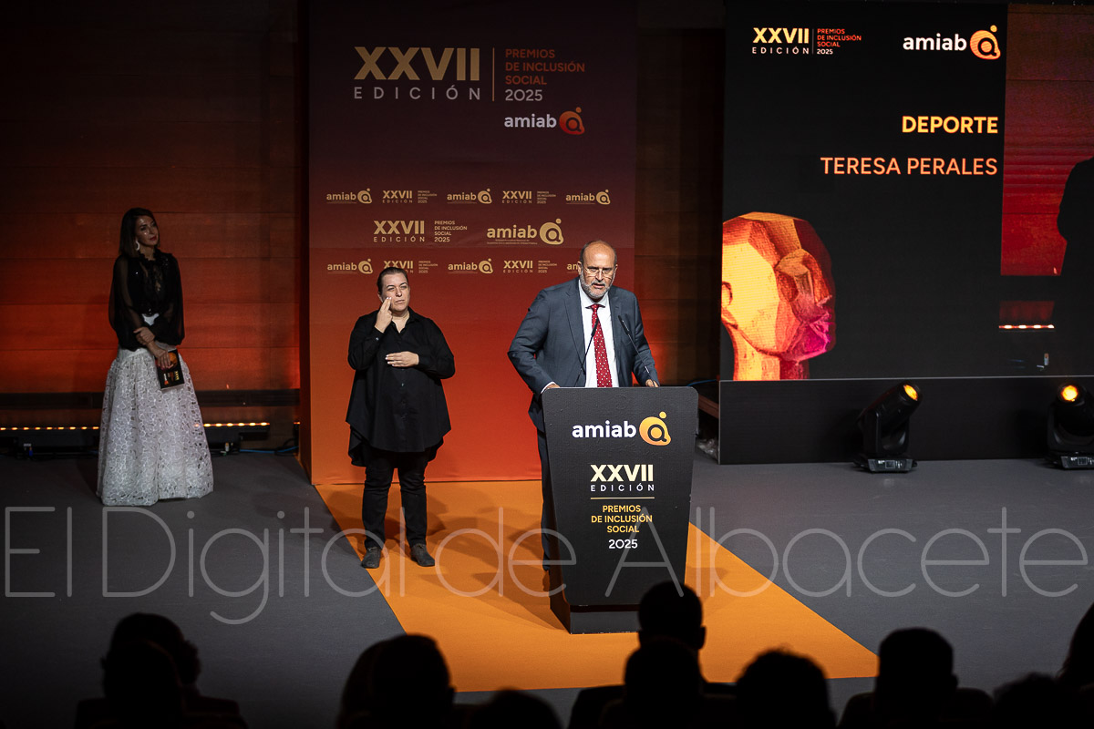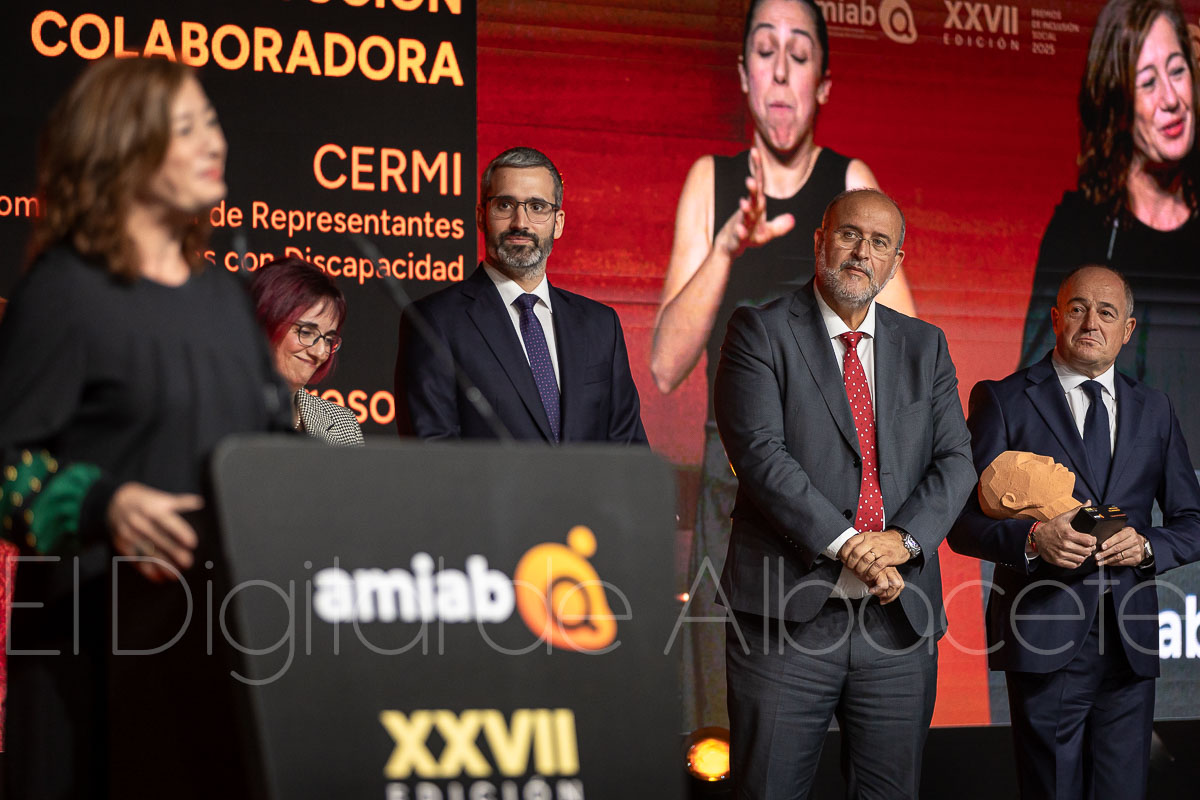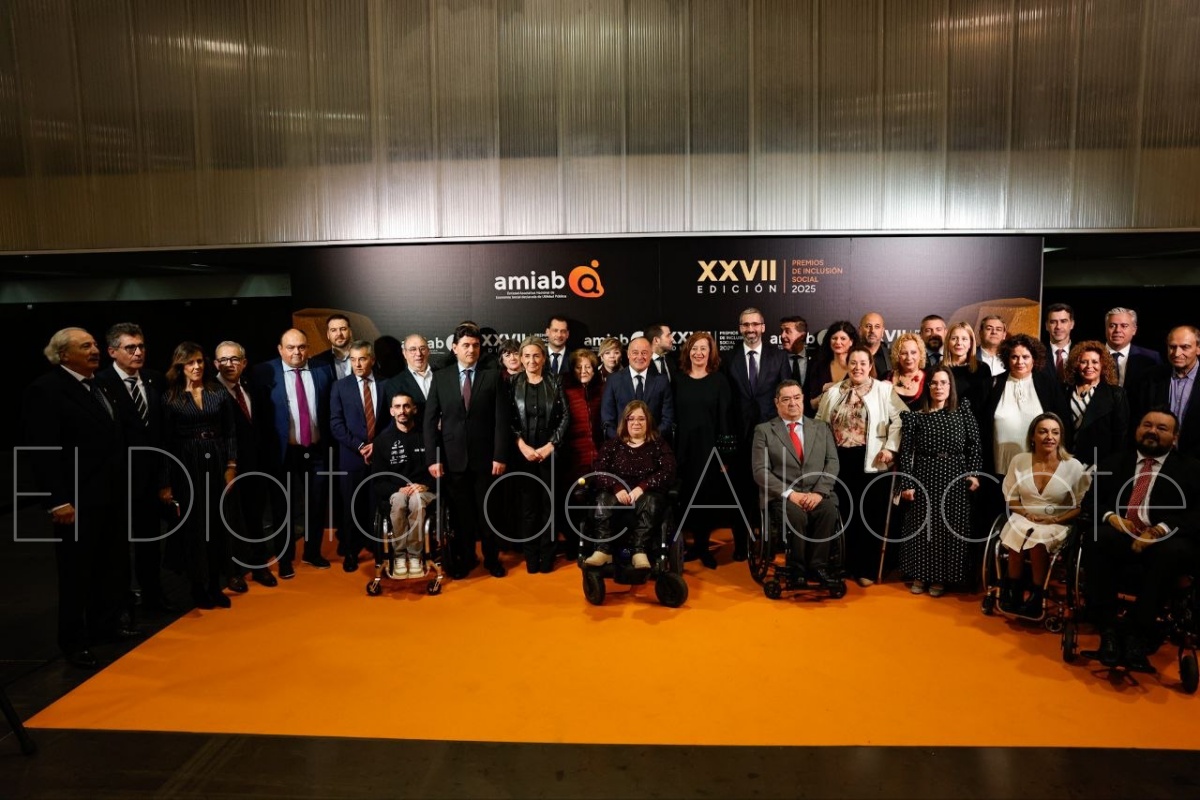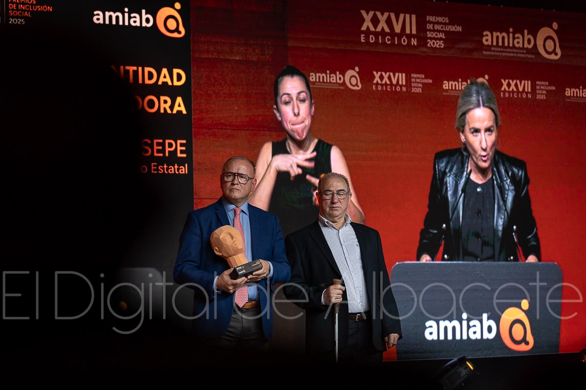 El Palacio de Congresos de Albacete acogía en la noche de este lunes, 10 de noviembre, la XXVII edición de los Premios de Inclusión Social de Amiab. Unos tradicionales galardones que en esta ocasión han sido para Antena 3 Deportes, el Congreso de los Diputados, el Comité Español de Representantes de Personas con Discapacidad (CERMI), Grupo Rujamar, la deportista Teresa Perales, el Servicio Público de Empleo Estatal (SEPE), la Asociación de Familias de Niños con Cáncer de Castilla-La Mancha AFANION, la Federación de Deportes para Personas con Discapacidad Intelectual de Castilla-La Mancha (FECAM), y Asociación para la actividad física y deporte adaptado ‘Metasport CLM’.