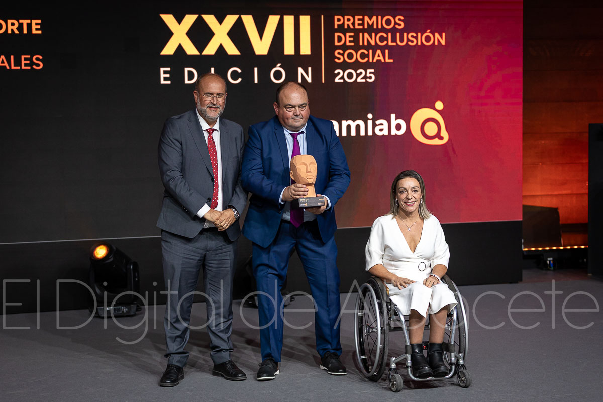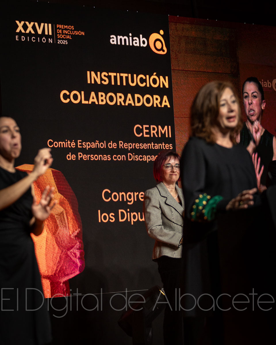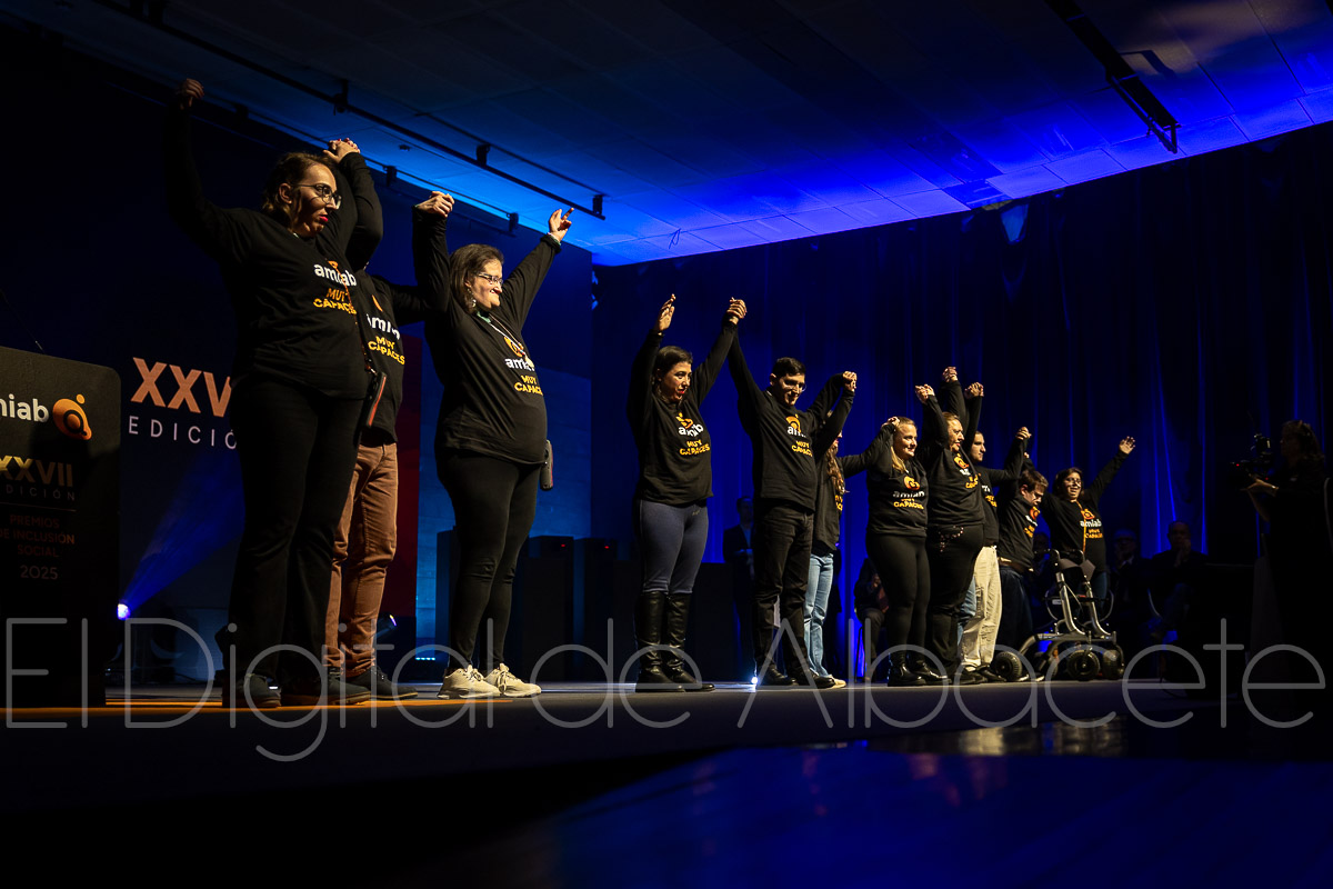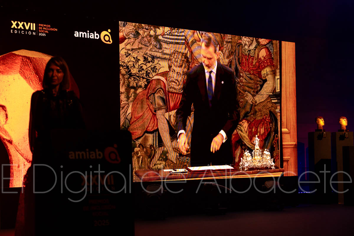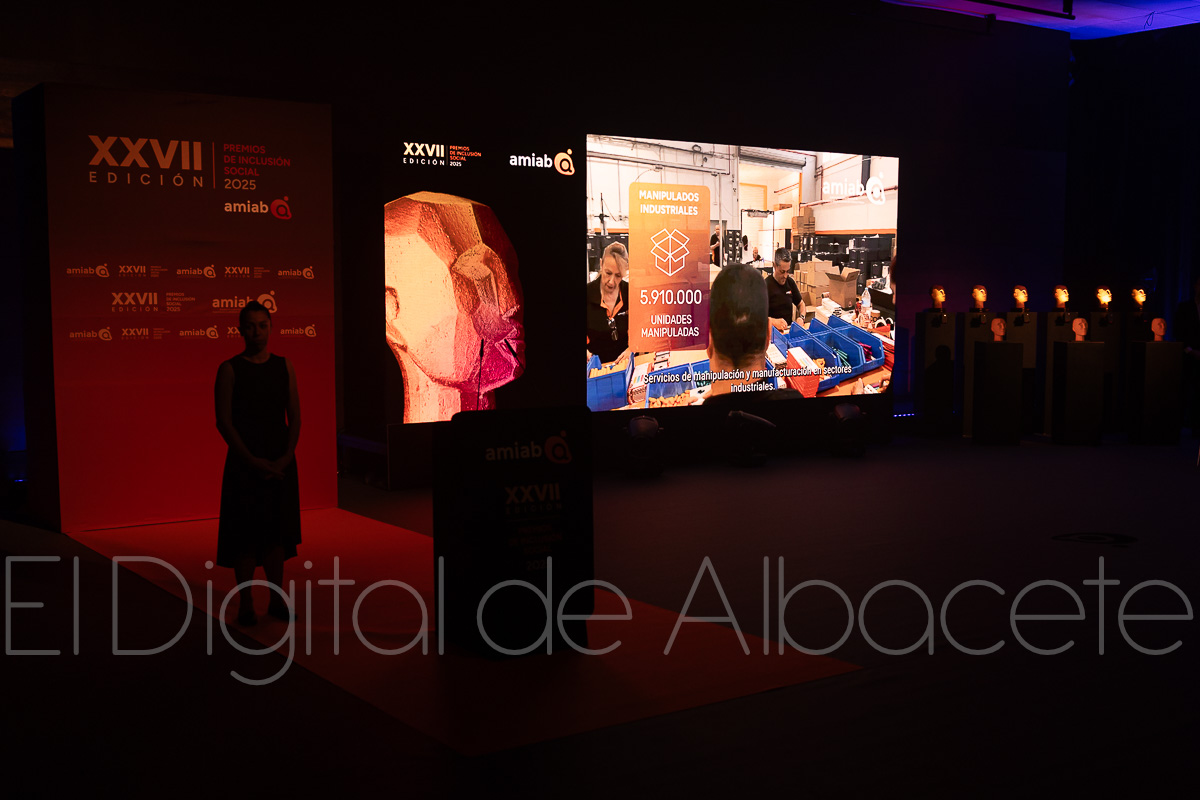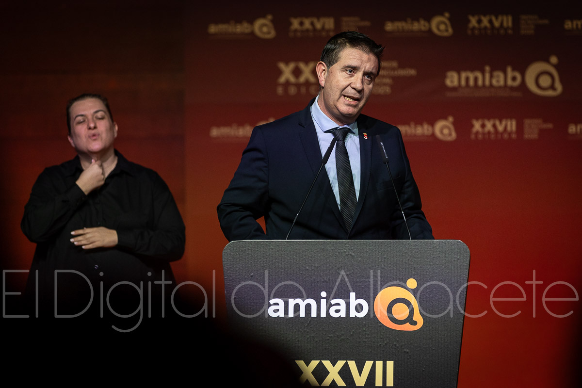El Palacio de Congresos de Albacete acogía en la noche de este lunes, 10 de noviembre, la XXVII edición de los Premios de Inclusión Social de Amiab. Unos tradicionales galardones que en esta ocasión han sido para Antena 3 Deportes, el Congreso de los Diputados, el Comité Español de Representantes de Personas con Discapacidad (CERMI), Grupo Rujamar, la deportista Teresa Perales, el Servicio Público de Empleo Estatal (SEPE), la Asociación de Familias de Niños con Cáncer de Castilla-La Mancha AFANION, la Federación de Deportes para Personas con Discapacidad Intelectual de Castilla-La Mancha (FECAM), y Asociación para la actividad física y deporte adaptado ‘Metasport CLM’.