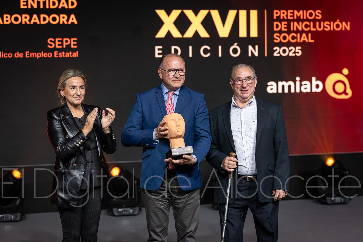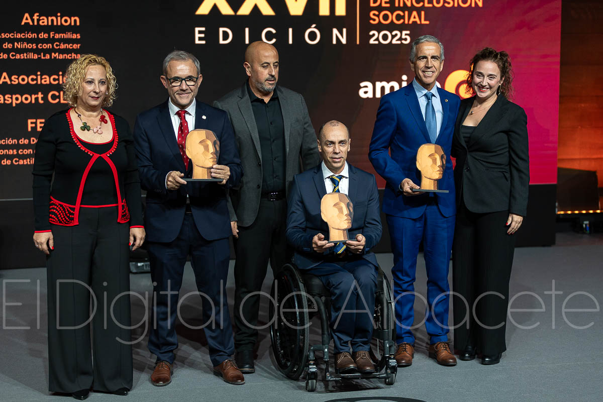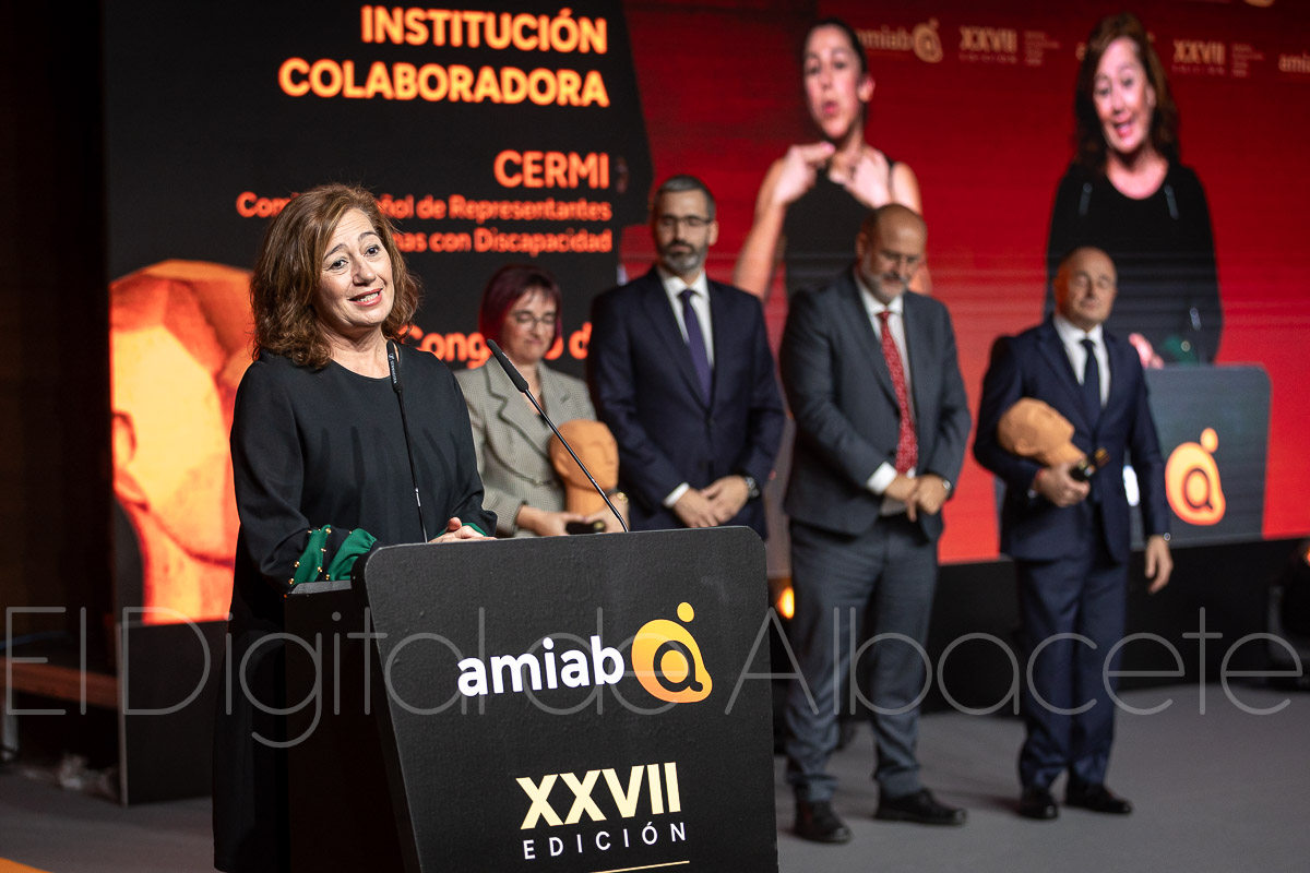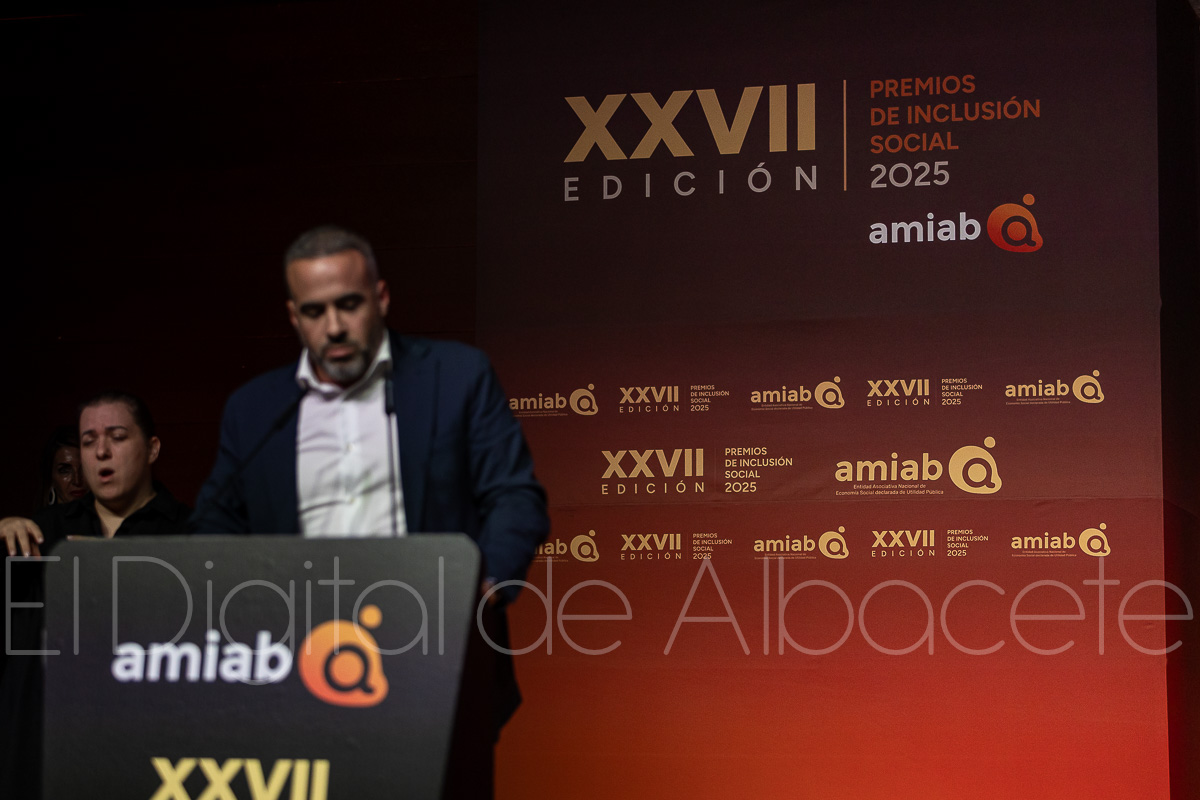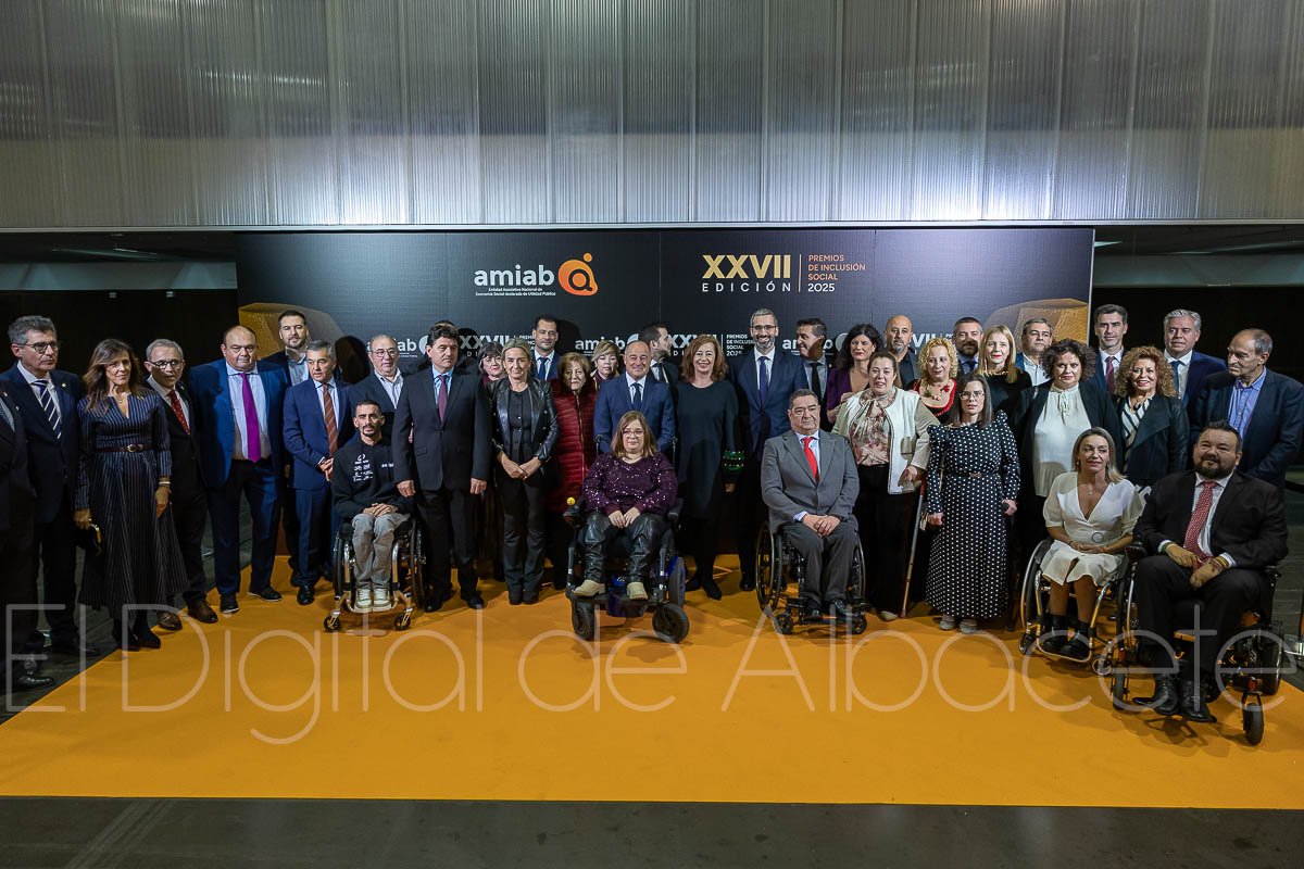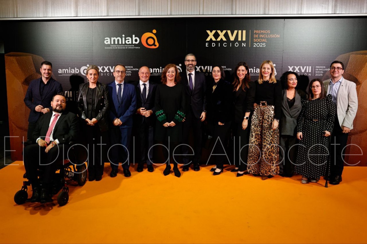 El Palacio de Congresos de Albacete acogía en la noche de este lunes, 10 de noviembre, la XXVII edición de los Premios de Inclusión Social de Amiab. Unos tradicionales galardones que en esta ocasión han sido para Antena 3 Deportes, el Congreso de los Diputados, el Comité Español de Representantes de Personas con Discapacidad (CERMI), Grupo Rujamar, la deportista Teresa Perales, el Servicio Público de Empleo Estatal (SEPE), la Asociación de Familias de Niños con Cáncer de Castilla-La Mancha AFANION, la Federación de Deportes para Personas con Discapacidad Intelectual de Castilla-La Mancha (FECAM), y Asociación para la actividad física y deporte adaptado ‘Metasport CLM’.