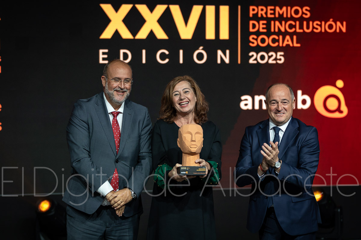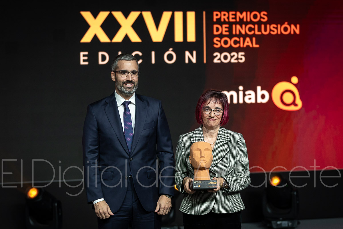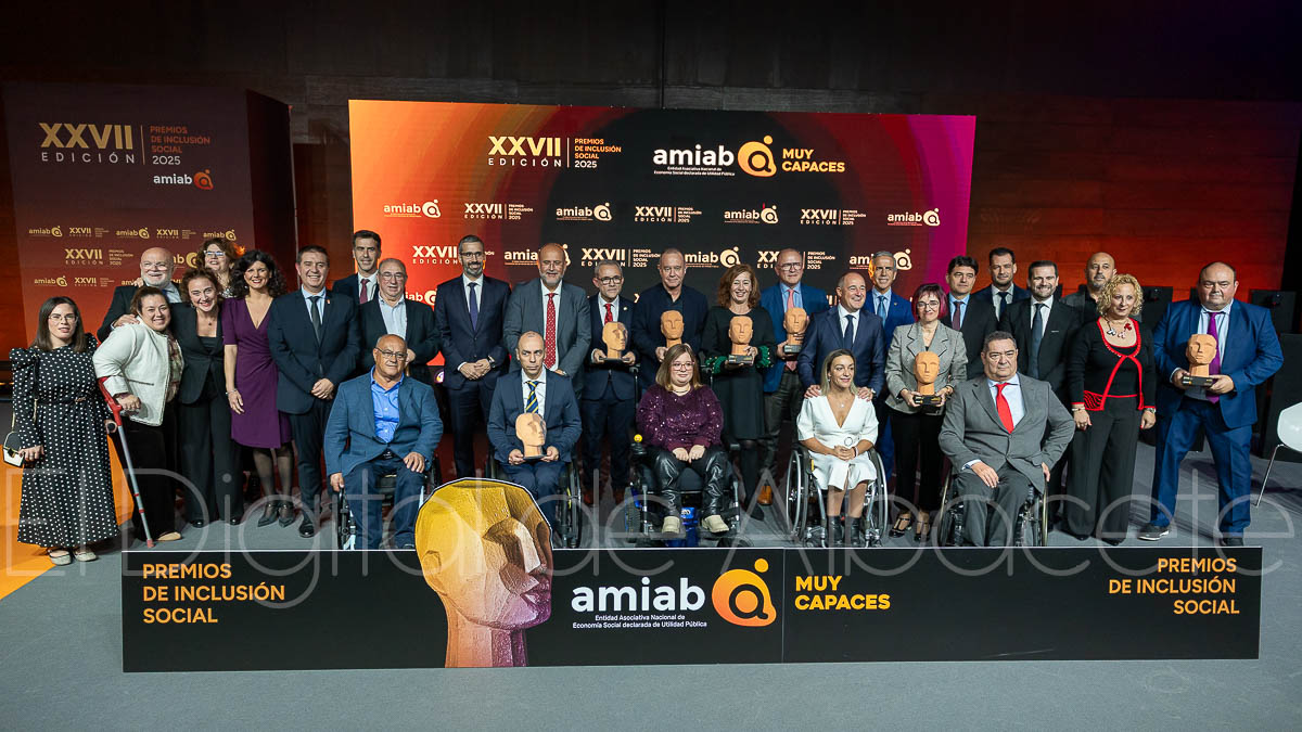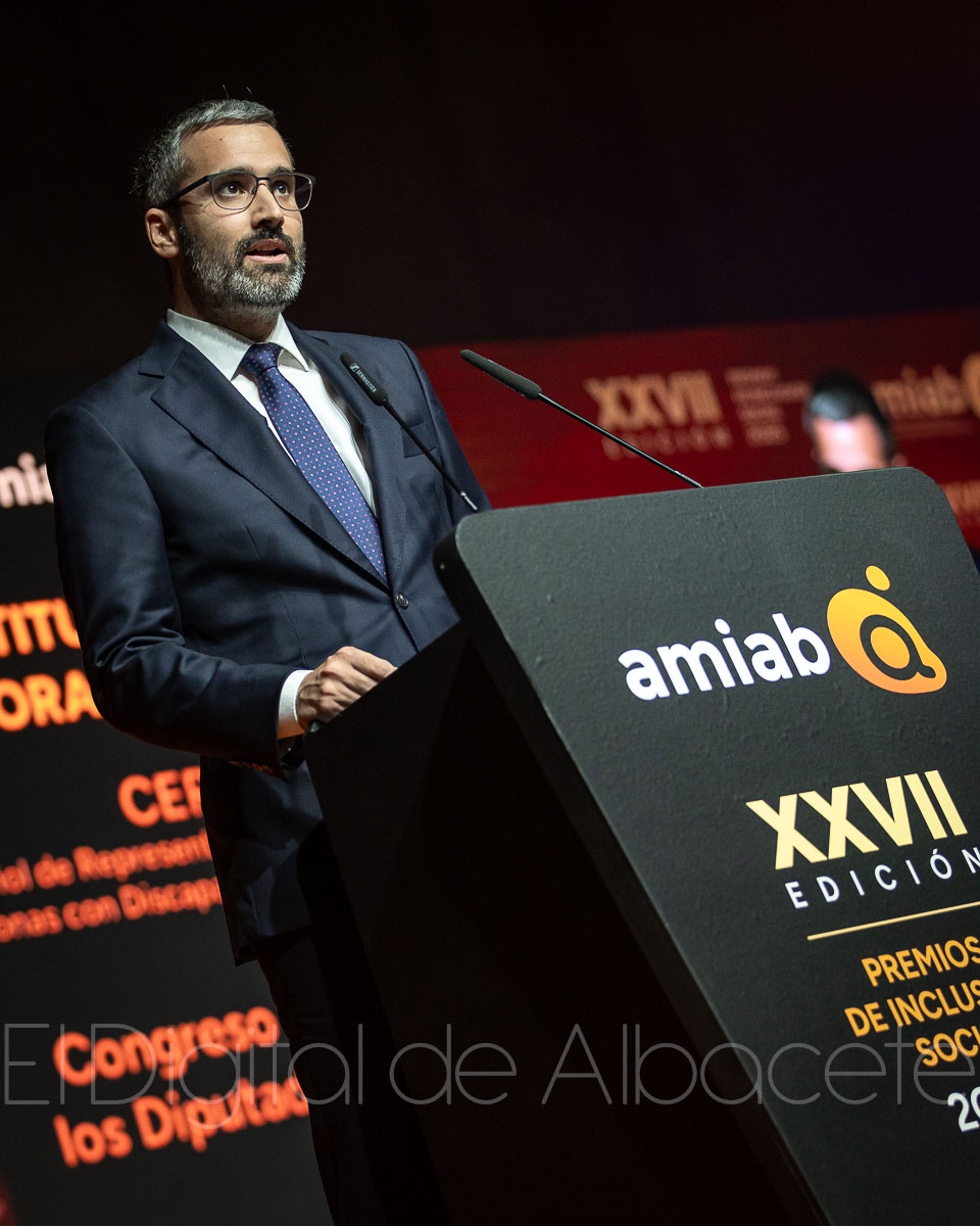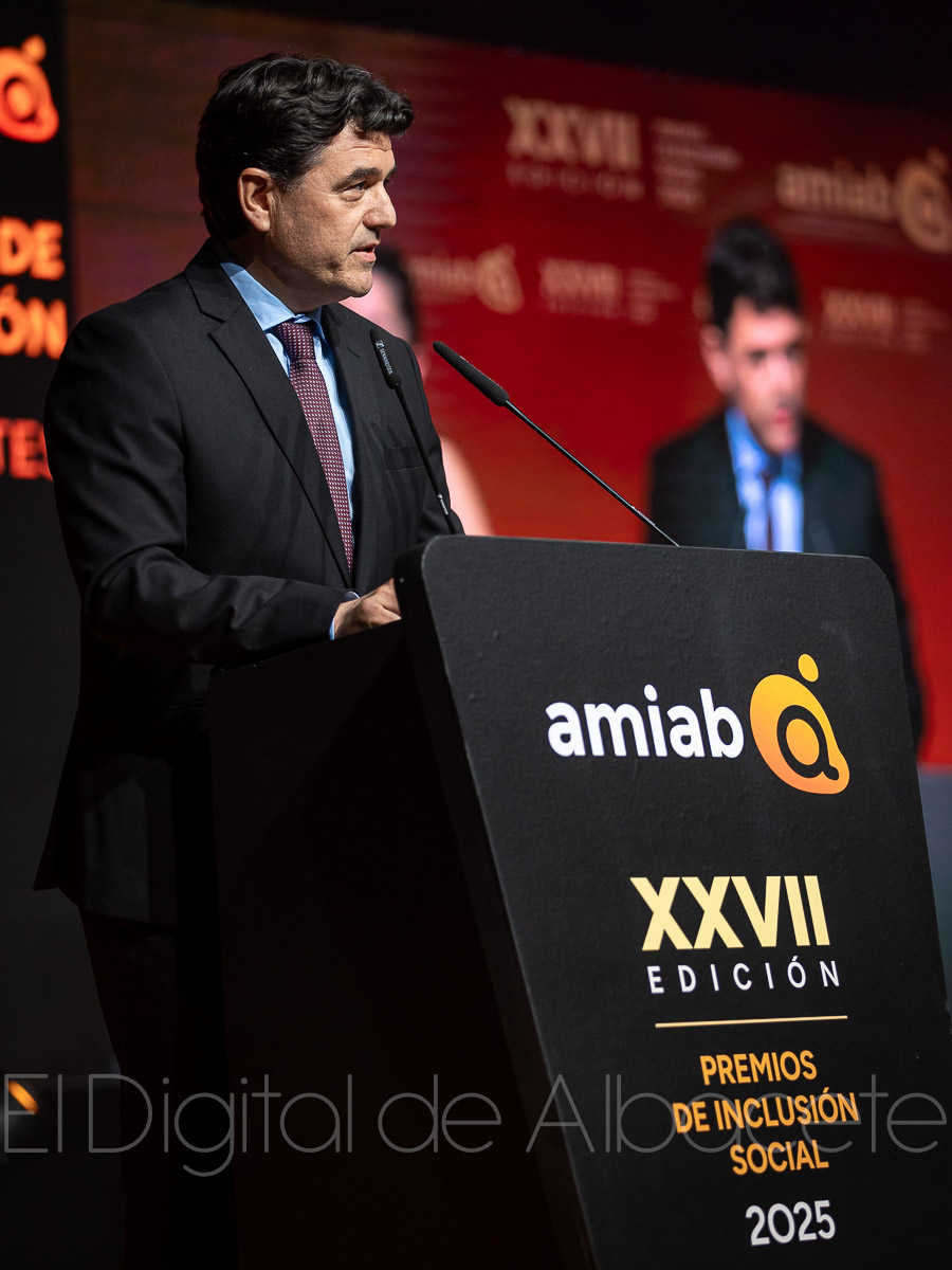 El Palacio de Congresos de Albacete acogía en la noche de este lunes, 10 de noviembre, la XXVII edición de los Premios de Inclusión Social de Amiab. Unos tradicionales galardones que en esta ocasión han sido para Antena 3 Deportes, el Congreso de los Diputados, el Comité Español de Representantes de Personas con Discapacidad (CERMI), Grupo Rujamar, la deportista Teresa Perales, el Servicio Público de Empleo Estatal (SEPE), la Asociación de Familias de Niños con Cáncer de Castilla-La Mancha AFANION, la Federación de Deportes para Personas con Discapacidad Intelectual de Castilla-La Mancha (FECAM), y Asociación para la actividad física y deporte adaptado ‘Metasport CLM’.