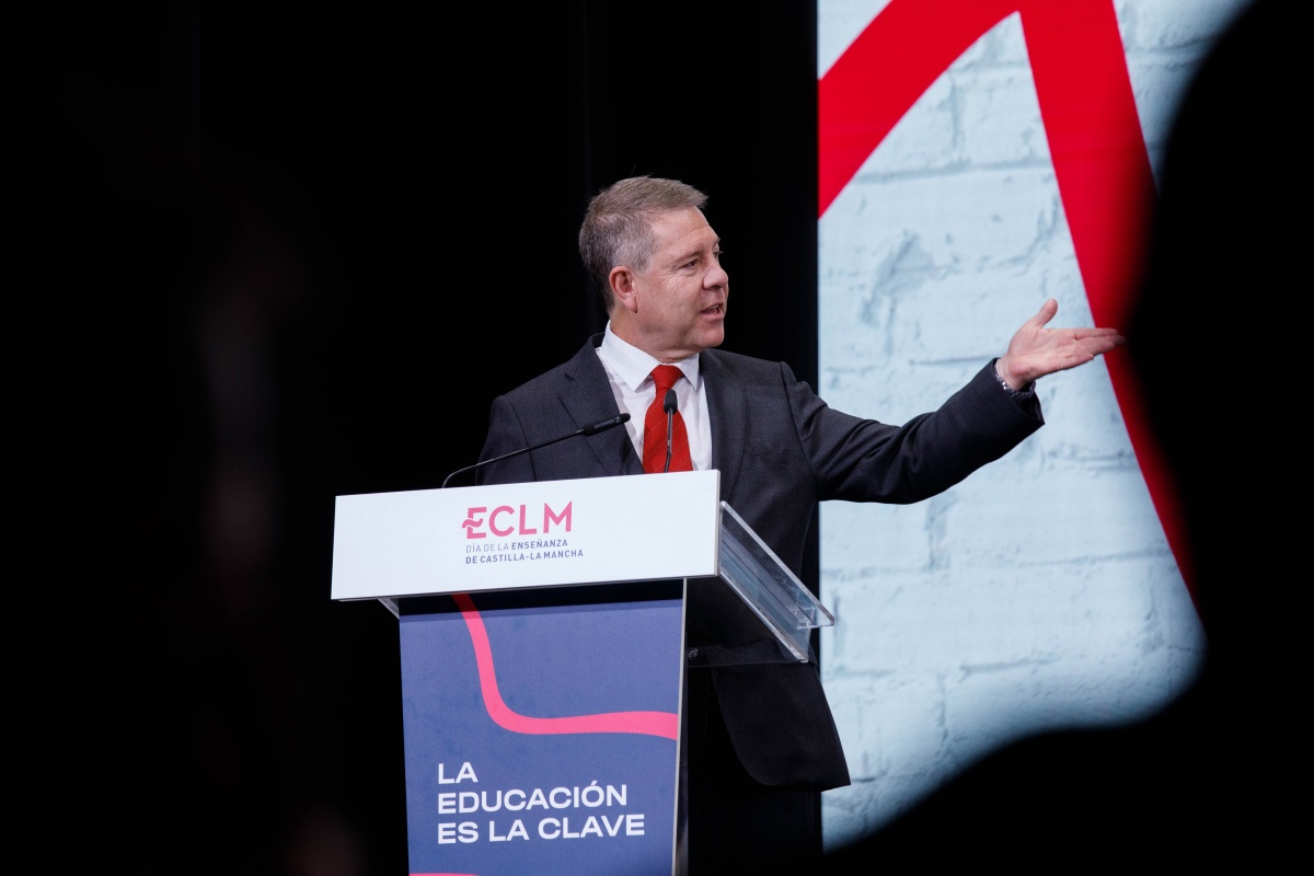 El presidente castellanomanchego se ha pronunciado así en el acto por el Día de la Enseñanza que ha acogido la localidad toledana de Consuegra, en el que también han intervenido el consejero de Educación, Amador Pastor, el presidente de las Cortes, Pablo Bellido, y la alcaldesa del municipio, María Luisa Rodríguez.