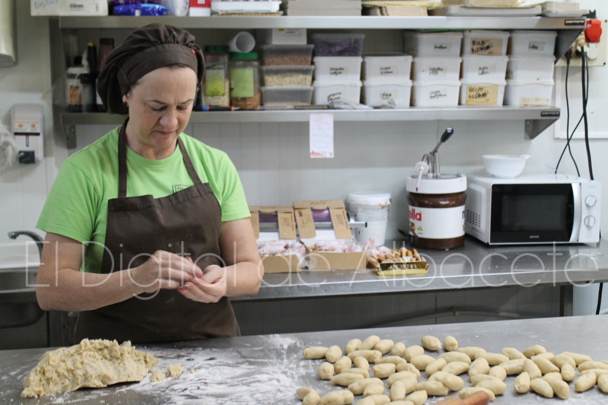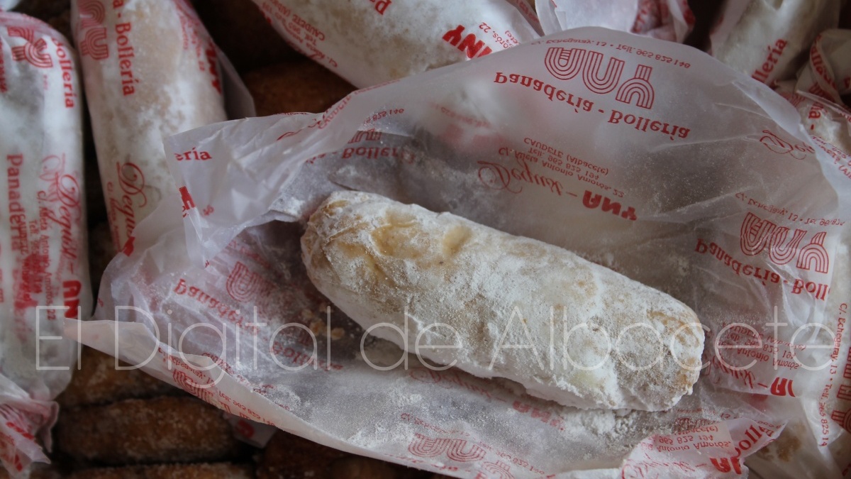 Any Caerols añade que “después de pasarle el rodillo hay que enrollarlos. La idea es que se asemejen a una montera de torero. Al principio se hacía más con la forma doblada de la montera, pero con el tiempo se ha ido haciendo más recto para ir más rápido y fácil a la hora de envolverlo. Una vez hecha la forma se mete al horno para dorarlos durante unos 20 minutos. Una vez pasado ese tiempo hay que sacarlos del horno, esperar a que se enfríen, y luego espolvoreamos con azúcar glass, envolverlos en papel, y ya estarían listos para la venta. El ‘Machaco’ es una pasta que se vende mucho durante todo el año, pero sobre todo en las fiestas de Moros y Cristianos”.