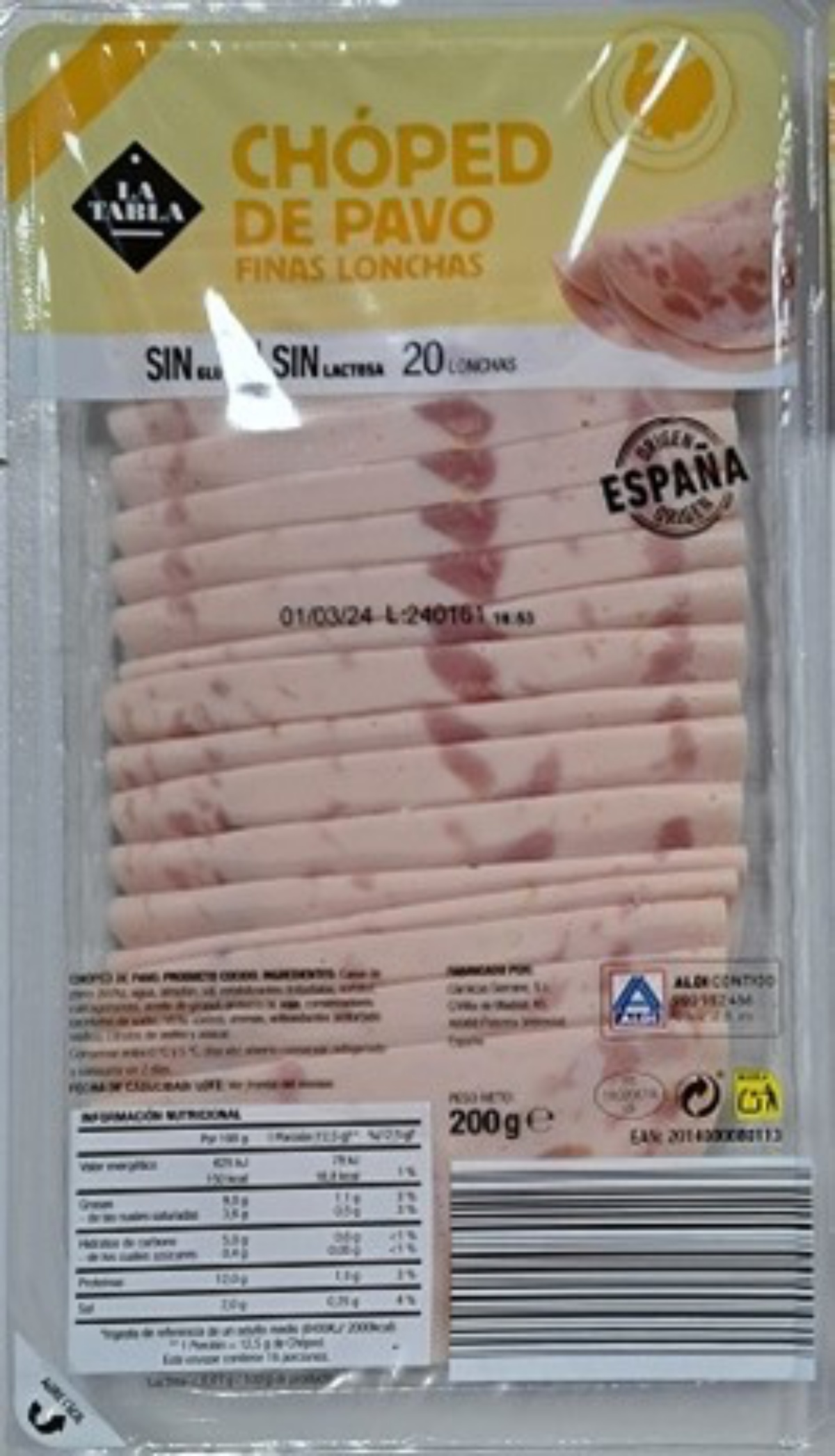 Los datos de los productos afectados son: «chopped lata finas lonchas» (150 gramos) y está envasado loncheado y refrigerado, con la marca Nuestra Alacena, que vende DIA, y otros sobre los que la Aesan no precisa dónde se comercializan pero cuyas enseñas figuran en la oferta de otras cadenas de distribución.