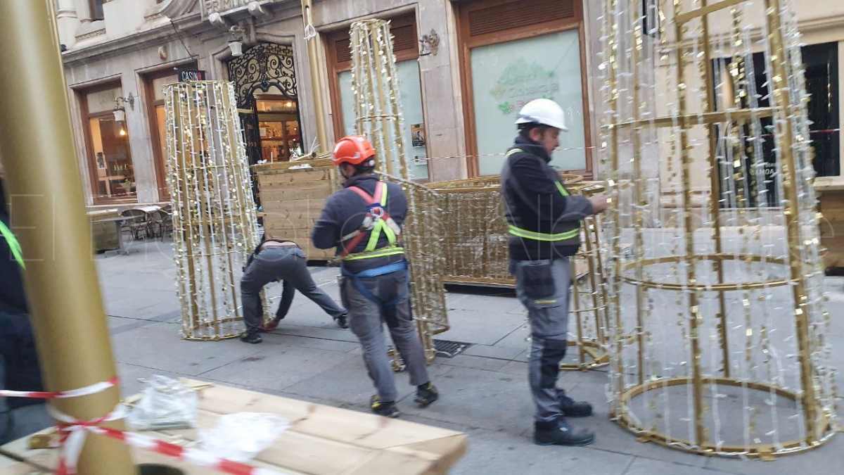 Fue hace justo una semana cuando se dio el pistoletazo de salida al montaje con la instalación de las bases que sustentarán la estructura de la nueva iluminación, yendo ya cogiendo forma las luminarias que darán color al corazón de Albacete.