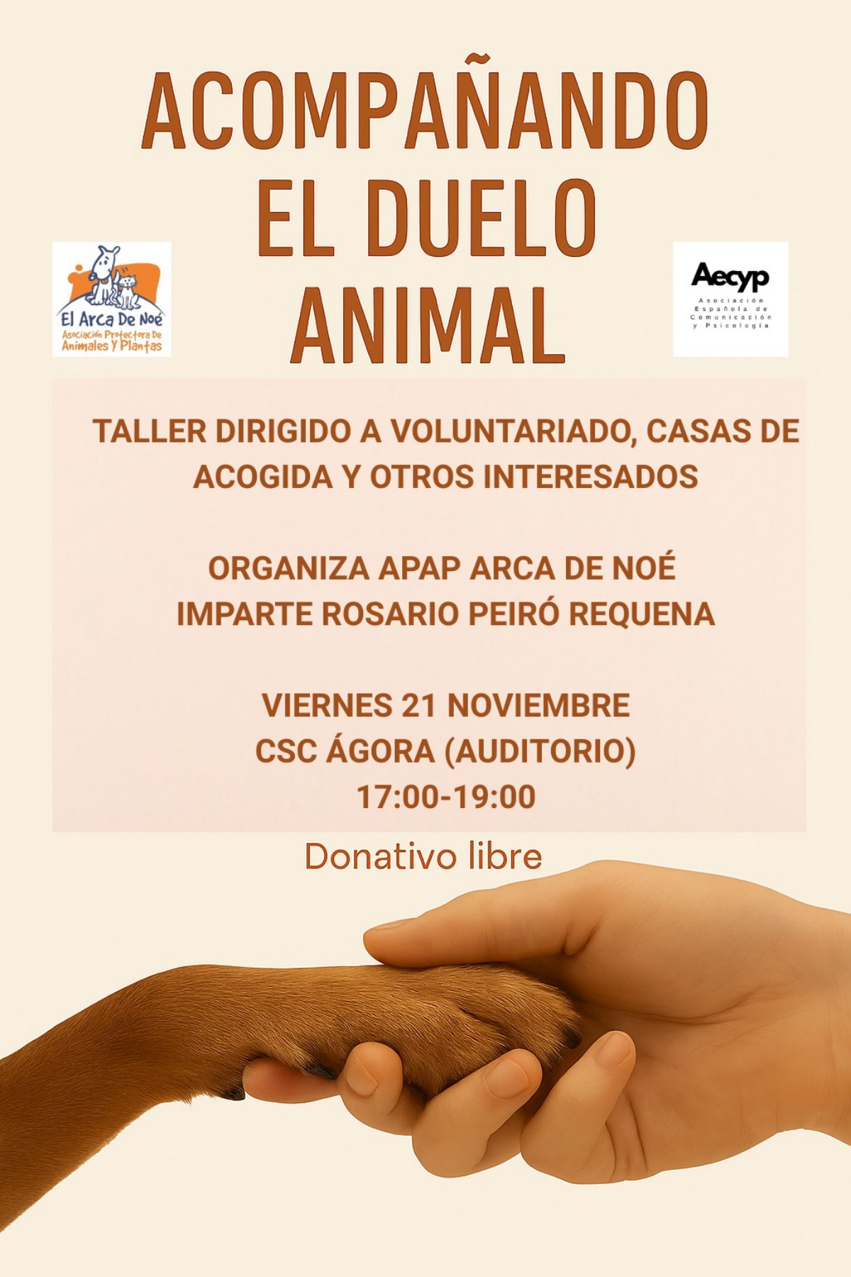 En este taller, titulado ‘Acompañando el duelo animal’ participará la psicóloga Rosario Peiró, fundadora de la Asociación Española de Comunicación y Psicología (AECYP), quien también colabora en el evento. Su intervención permitirá abordar el tema desde una perspectiva profesional, analizando cómo se vive este tipo de pérdida y cómo puede gestionarse de forma respetuosa y emocionalmente sana.