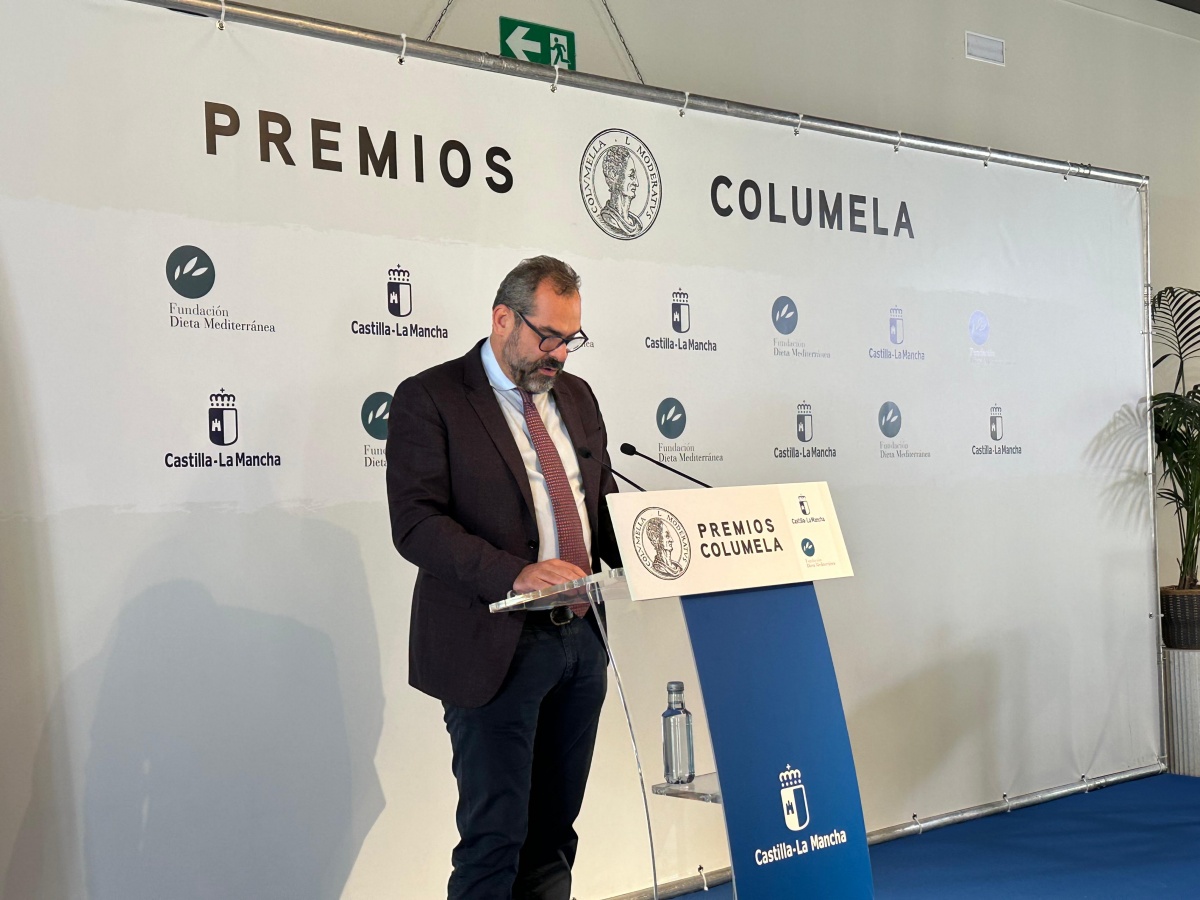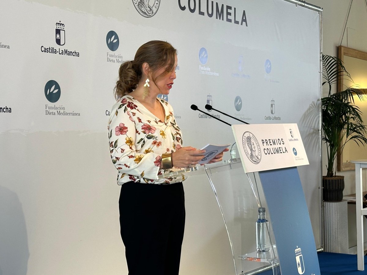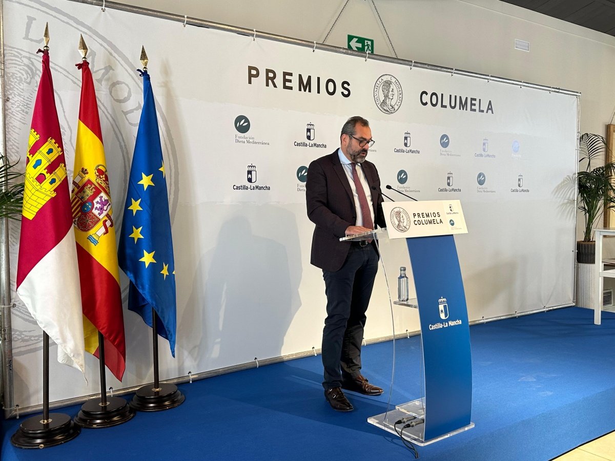 Martínez Lizán, titular de Agricultura, Ganadería y Desarrollo Rural del Gobierno de Castilla-La Mancha, ha asegurado este miércoles que la quinta edición de los Premios Columela es “una ocasión especial” por dos cuestiones: la primera es que se ha retrasado su entrega un mes para hacerla coincidir con la celebración del 15º aniversario de la declaración de la Dieta Mediterránea como Patrimonio Inmaterial de la Humanidad por la UNESCO; y la segunda es que, este año, a los tres galardones habituales se suma un premio especial a María Rozalén; la cantautora de Albacete.
