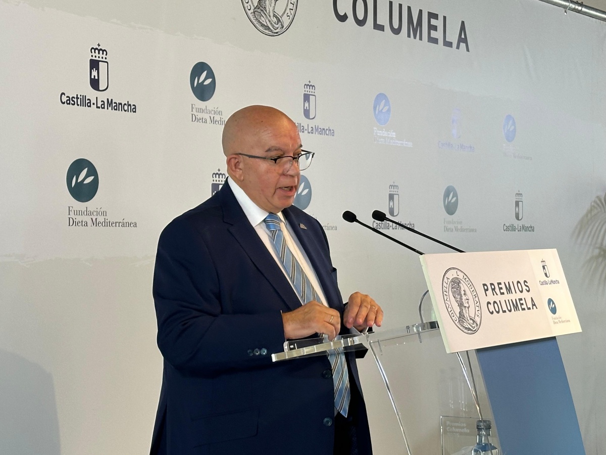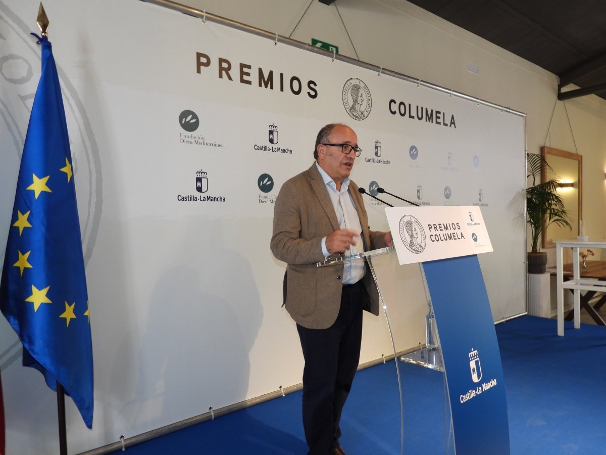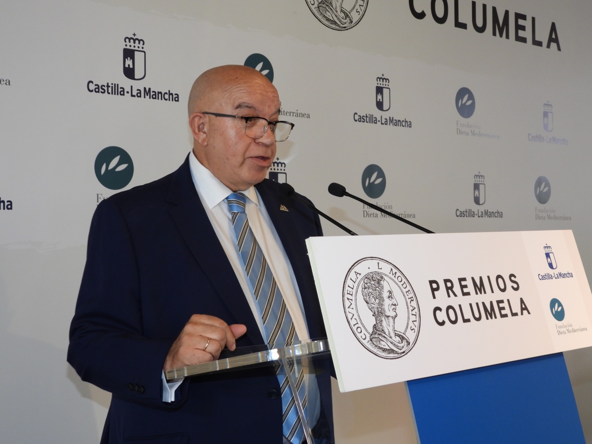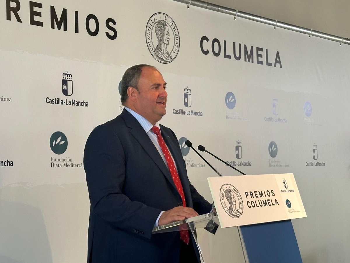 Martínez Lizán, titular de Agricultura, Ganadería y Desarrollo Rural del Gobierno de Castilla-La Mancha, ha asegurado este miércoles que la quinta edición de los Premios Columela es “una ocasión especial” por dos cuestiones: la primera es que se ha retrasado su entrega un mes para hacerla coincidir con la celebración del 15º aniversario de la declaración de la Dieta Mediterránea como Patrimonio Inmaterial de la Humanidad por la UNESCO; y la segunda es que, este año, a los tres galardones habituales se suma un premio especial a María Rozalén; la cantautora de Albacete.