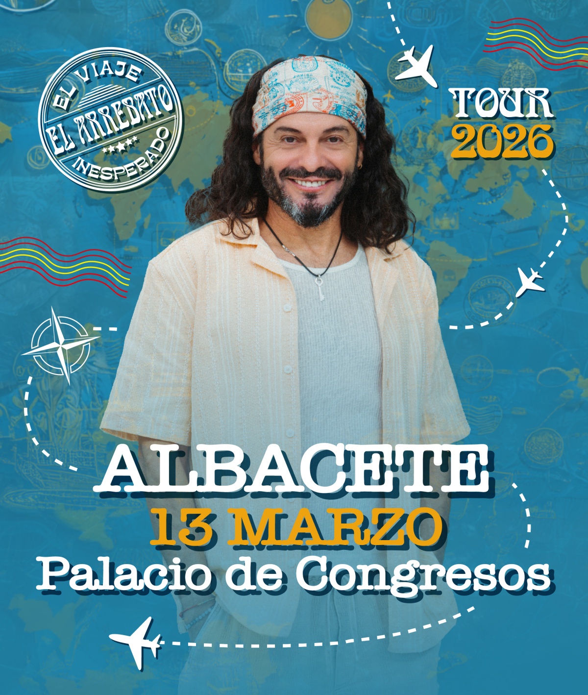 El Arrebato ha anunciado que el próximo 13 de marzo hará parada en el Palacio de Congresos de Albacete para presentar en directo El Viaje Inesperado, su nuevo trabajo de estudio. Será un concierto concebido, según adelanta el propio artista, como “un espectáculo lleno de alegría, de sentimientos y emociones, donde cada canción es un abrazo y una fiesta para el alma”.
