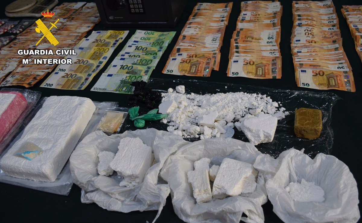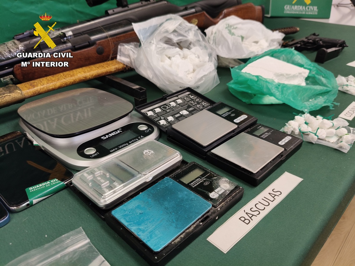 Además, fueron incautadas un arma corta de fogueo, y 2 carabinas de aire comprimido y una katana, así como 75.916 euros en efectivo, supuestamente procedentes de la venta de la droga; 2 turismos utilizados para el transporte y transacciones del estupefaciente, y varios teléfonos móviles, básculas de precisión, y diversos útiles empleados en la producción, alteración y dosificación de la sustancia estupefaciente.