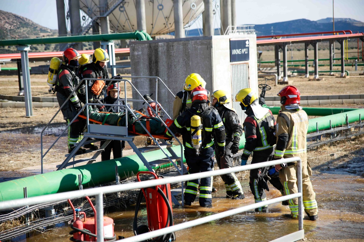 El supuesto del simulacro se ha basado en un accidente ocurrido en la sala de bombas de gas propano, tras la sustitución de una de las válvulas, momento en el que se ha producido la deflagración por la acumulación de gas, alcanzando a dos de los operarios, que sufren heridas por quemaduras.