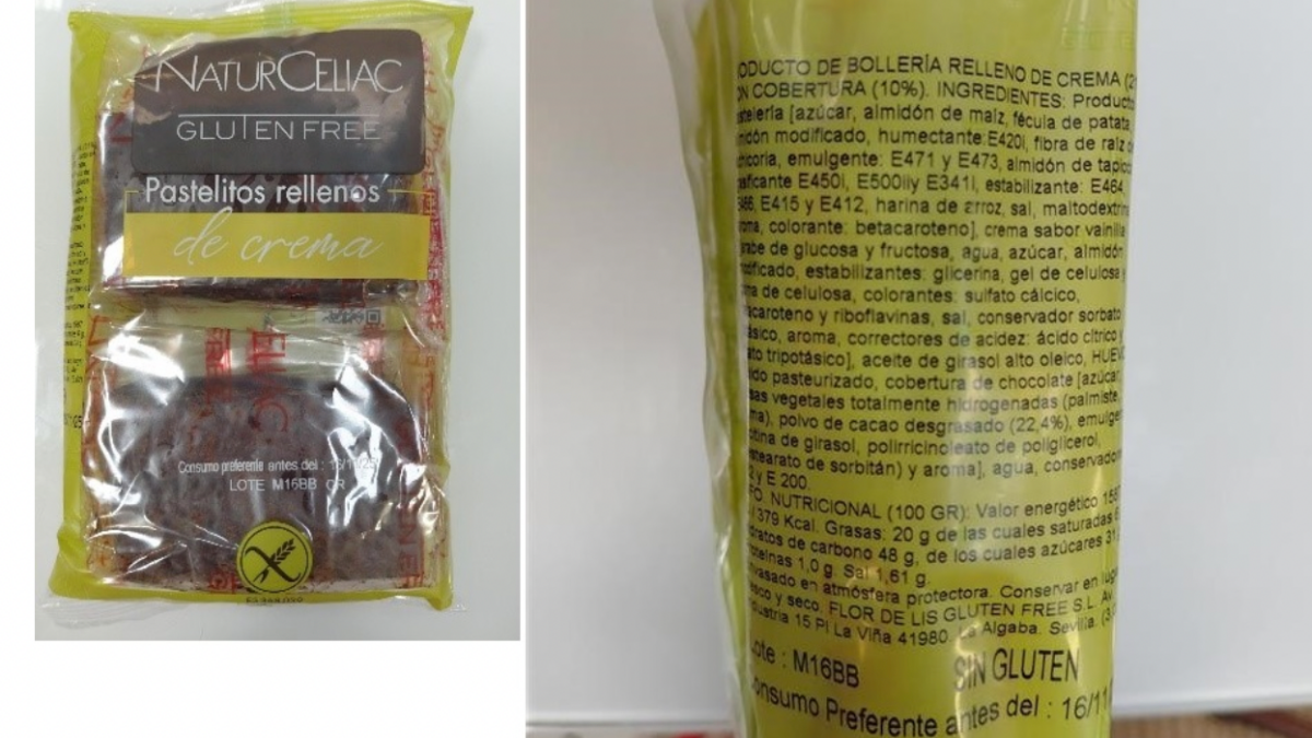 Los nuevos lotes incluidos en la alerta corresponden al producto Pastelitos rellenos de crema y Bombitas rellenas de crema, de la marca NaturCeliac Gluten Free.