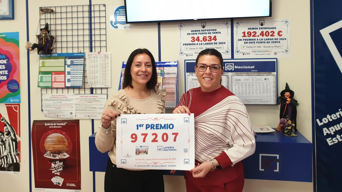 En el Sorteo nº 93 de Lotería Nacional celebrado este jueves, 20 de noviembre de 2025, ha sido agraciado con el Primer Premio el número 97207, cuyo premio asciende a 300.000 euros al número.